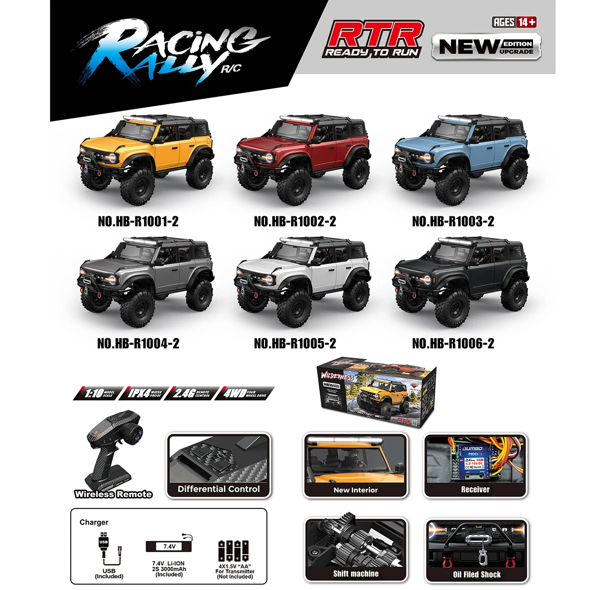RC Crawler 1/10 4WD RTR HB R1001 with LED Car 2.4G Electric Remote Control Rock Buggy Off-road Vehicle Rc Cars for Adults