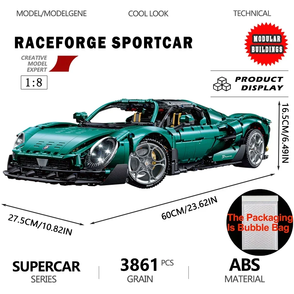 Name: 1:8 Scale Model Supercar RACEFORGE Car Building Blocks