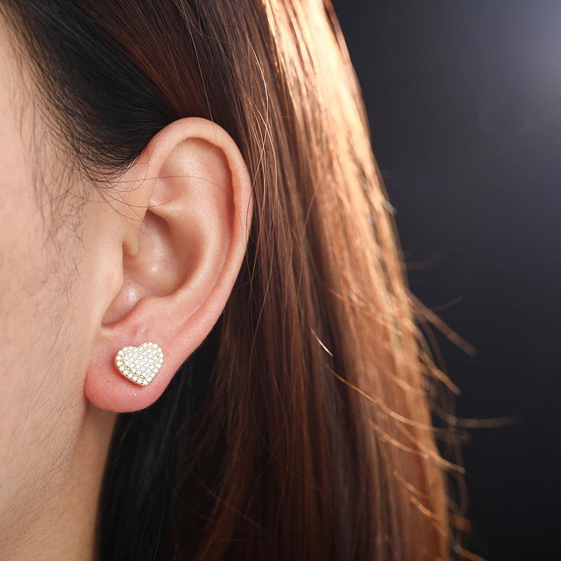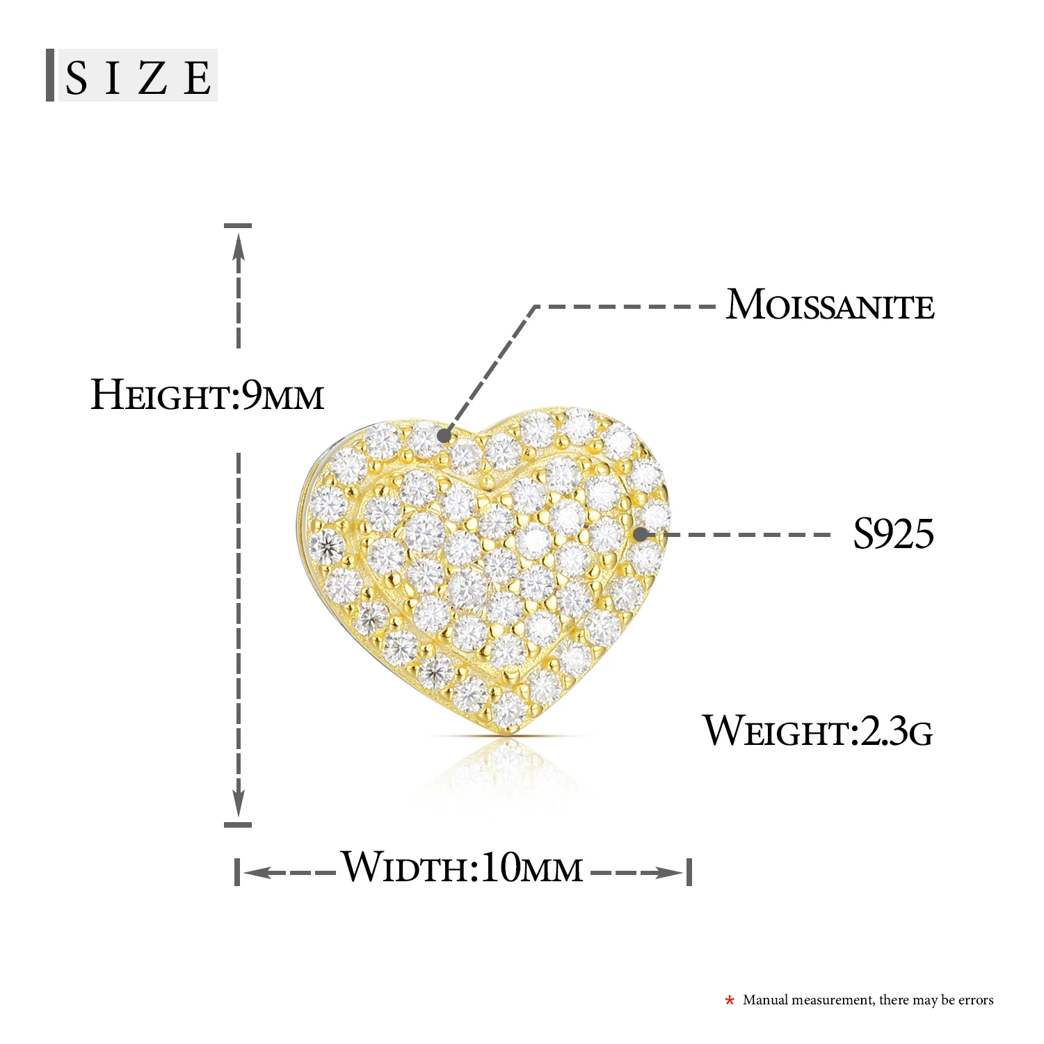 100% Real Moissanite Gemstone Gold Heart Stud Earrings Top 925 Sterling Silver Shining Moissanite Diamond Fashion Jewelry 2021