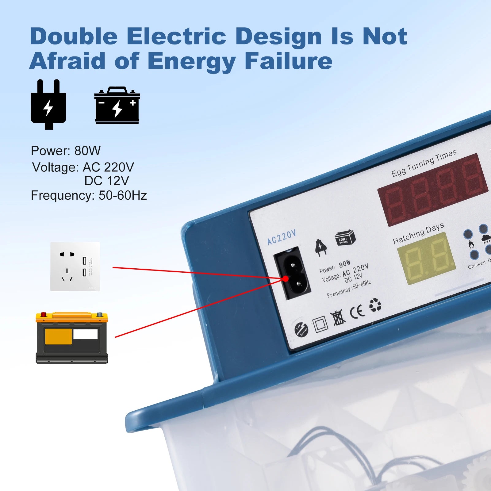 Effortlessly hatch quail eggs with our incubator featuring automatic egg turning, real-time display, and precise control. The hatching process continues even during an energy outage, and it's easy to operate. With multiple uses, our incubator is a must-add to any farmer's supplies.