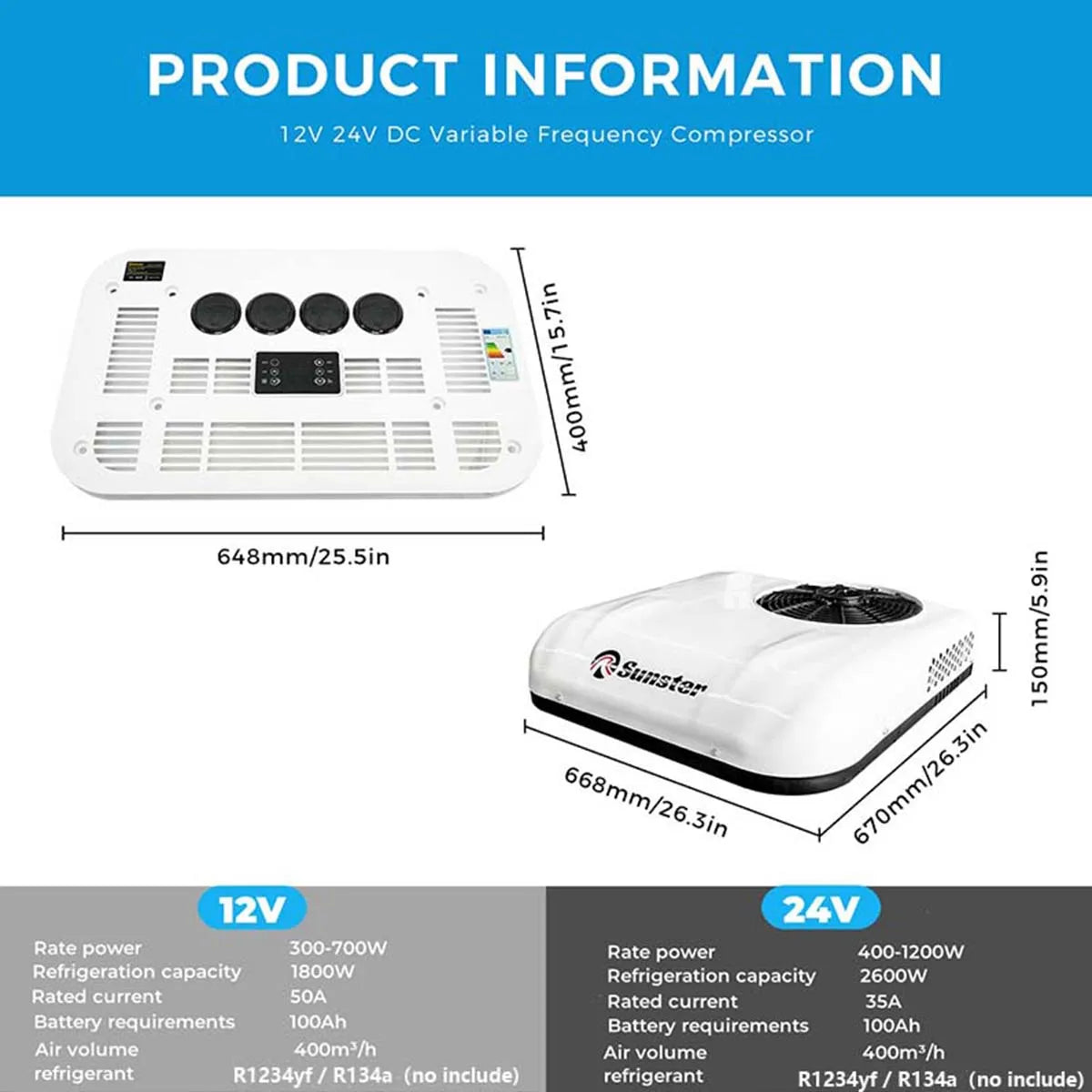 12V/24V Cool Rooftop Air Conditioner Electric Cool RV Rooftop Parking AC Unit For Truck Camper Van Caravans Garden