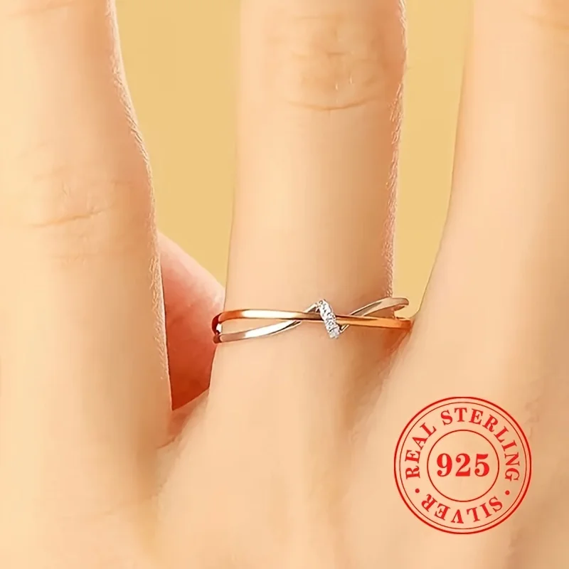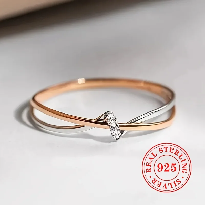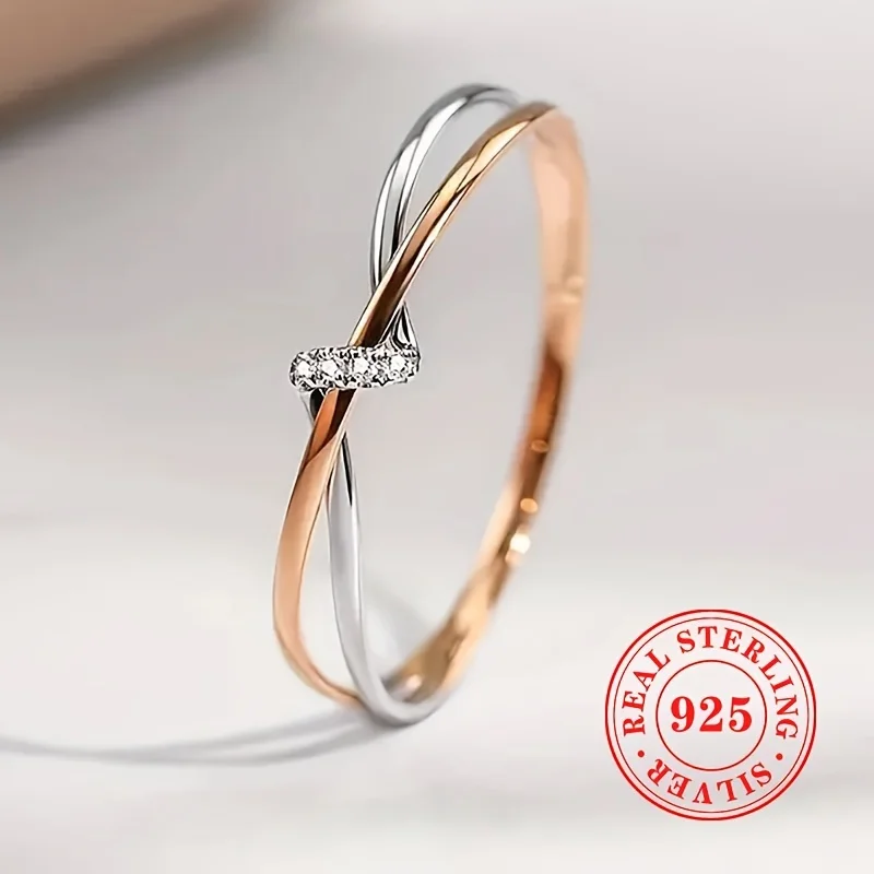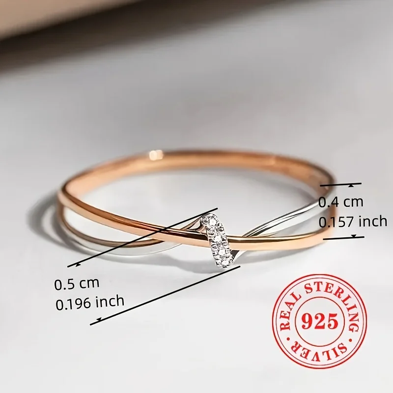1pc READKISS Women'S Elegant S925 Sterling Silvery Double-Tone Twisted Ring - Rhodium-Plated April Birthstone