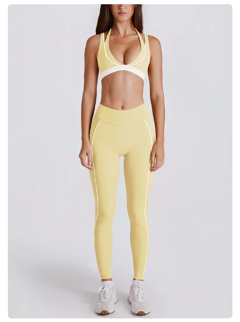 2 Pieces Women's Tracksuit Yoga Set Workout Gym Sportswear High Waist Leggings Fitness Shorts V-neck Halter Bras Sports Suits