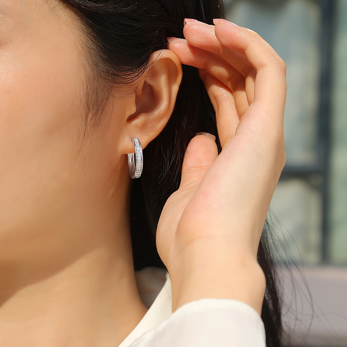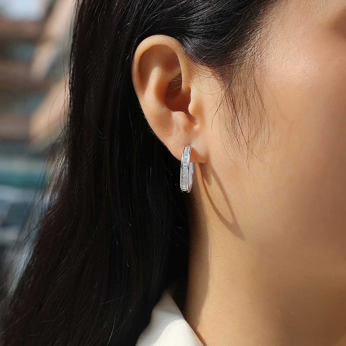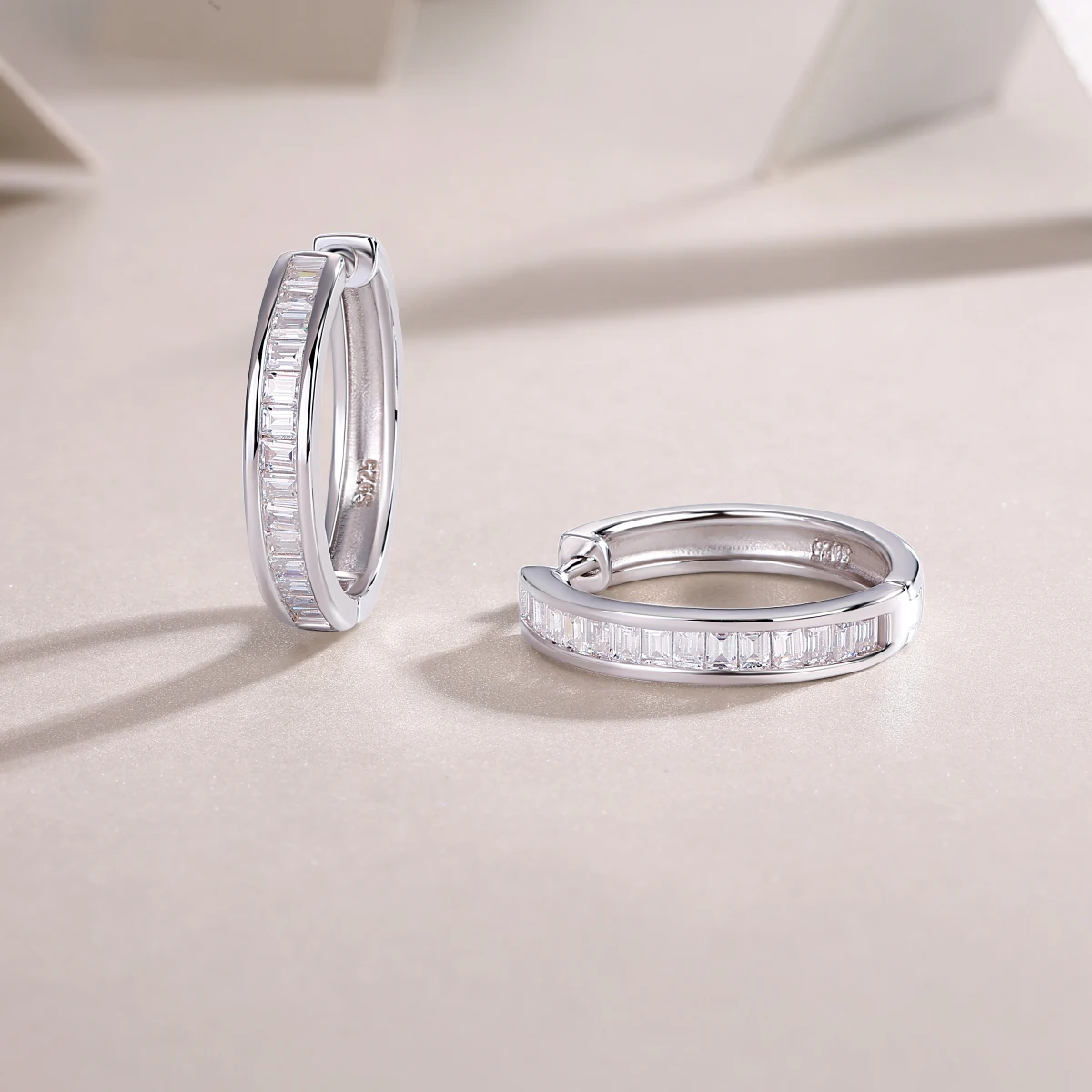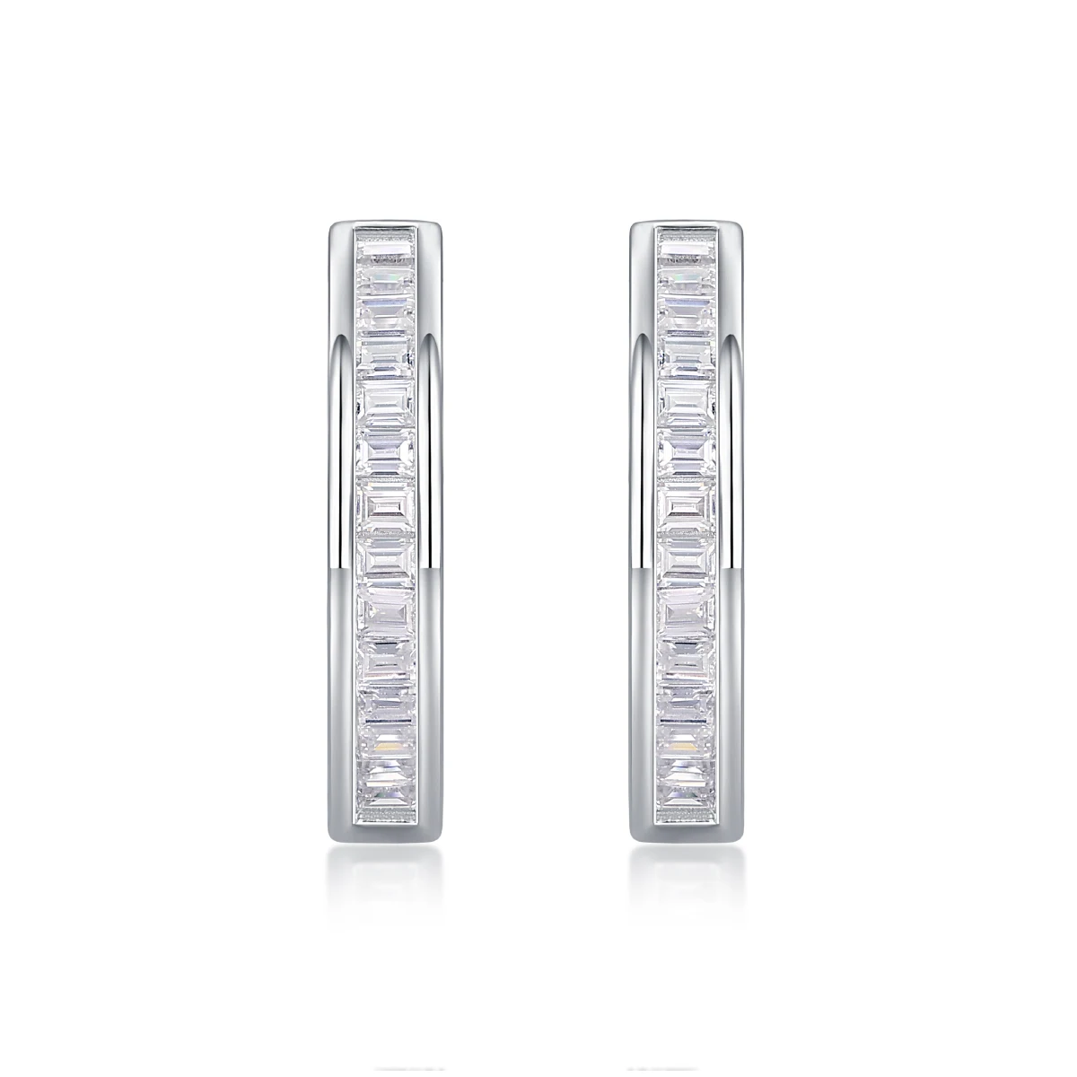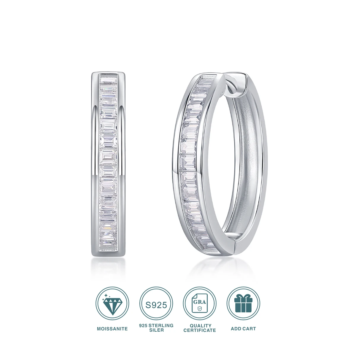 2pcs Moissanite Hoop Earrings 925 Sterling Silver 18K Gold Plated Baguette Cut Design with GRA Certificate for Women