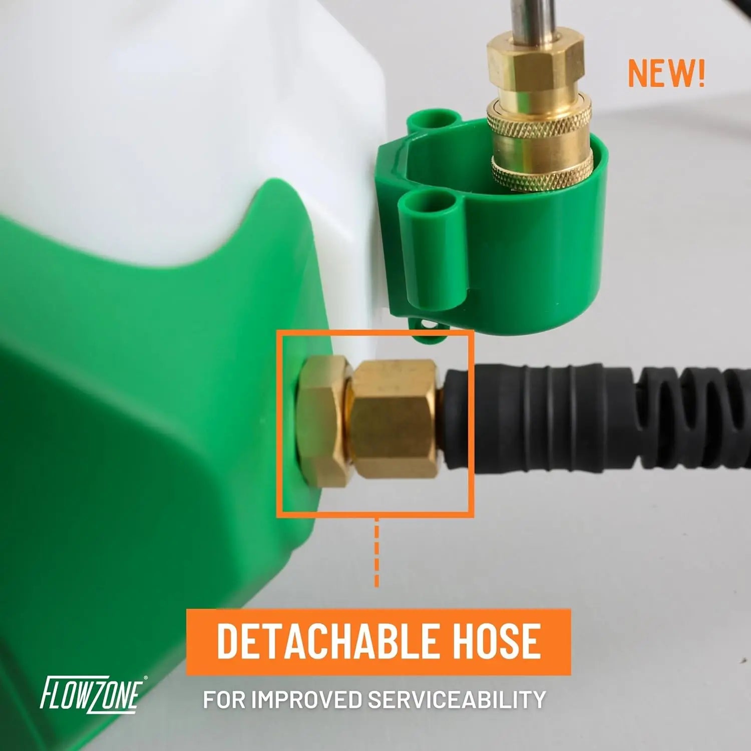 CONVENIENT DESIGN - This electric garden sprayer features a ComfortStraps backpack system for comfort and convenience during prolonged use. A threaded brass connector allows you to detach the hose without removing the front cover plate.