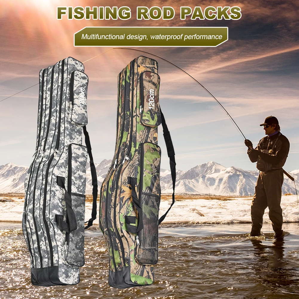 Experience effortless organization on every fishing trip with a 3-layer folding rod bag that carries up to 120 cm and keeps your gear ready in one place.