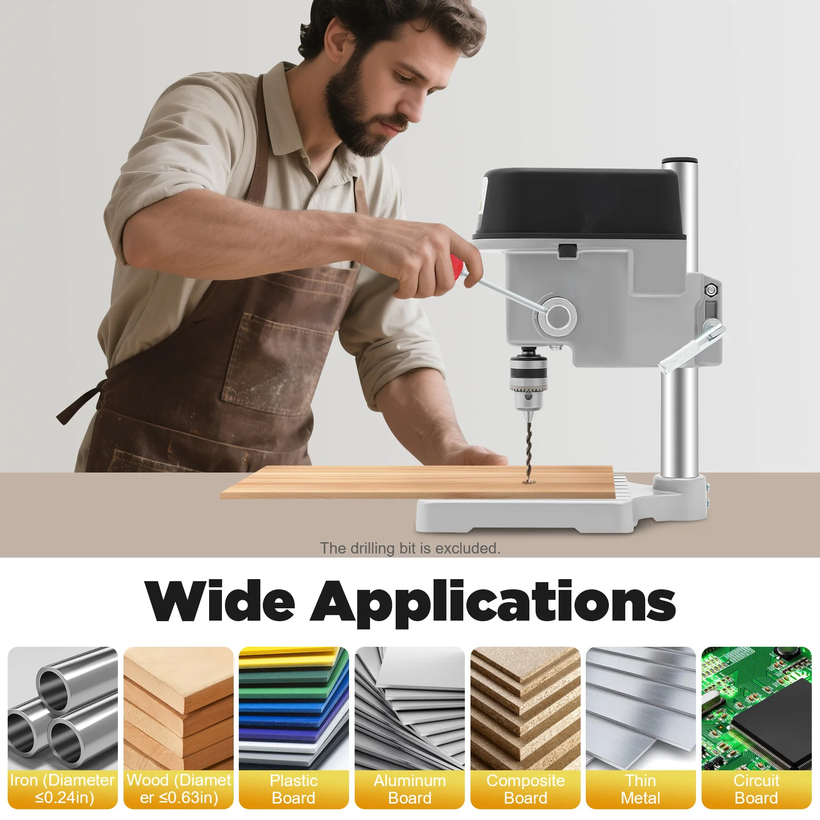 Compact and powerful bench drill press for DIY enthusiasts. Perfect for precise drilling in wood, metal, plastic, and PCBs.
