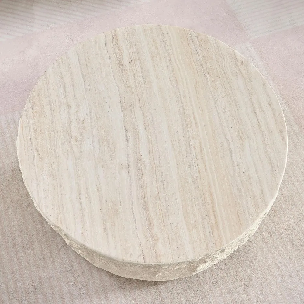 - [Modern Designed Coffee Table]: The coffee table has a imitation stone design,the texture and feel of the stone are designed around the coffee table, which enhances its texture and design. The surface is smooth and easy to care for, and only needs to be gently wiped with a damp cloth to easily remove stains.
