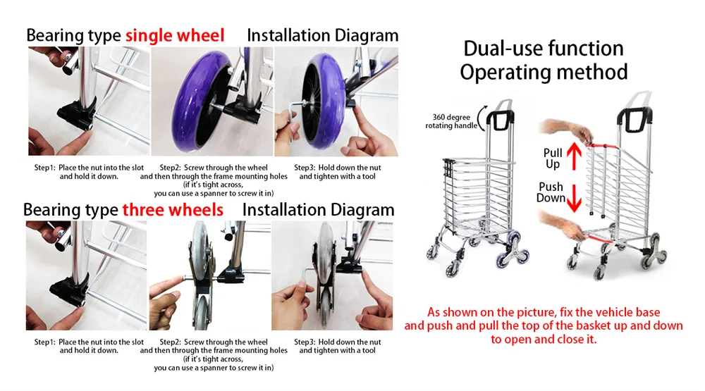 Uses: shopping, pulling goods, climbing, flat push, folding, etc.