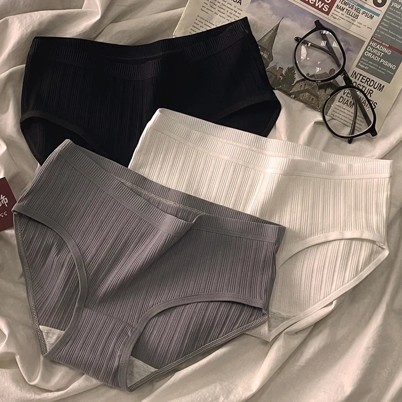 3PCS/Set Sports Style Cotton Women's Panties Girls' Underwear Breathable Mid Waist Shorts Sexy Lingerie Plus Size Solid Briefs