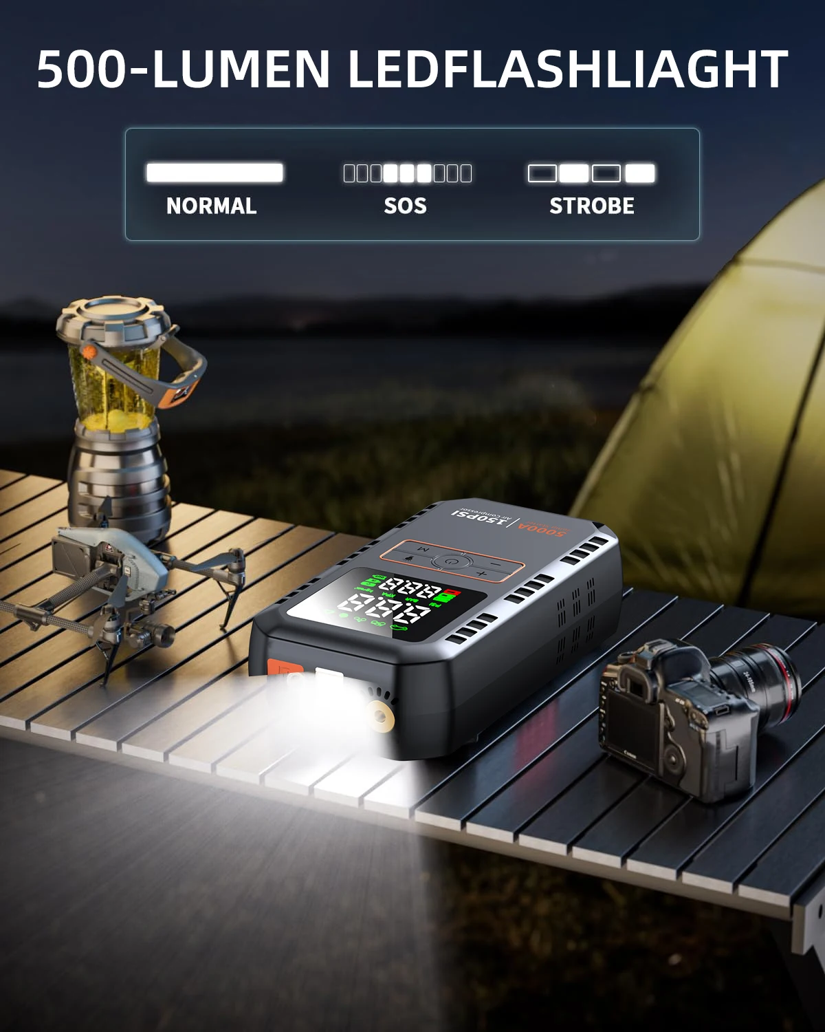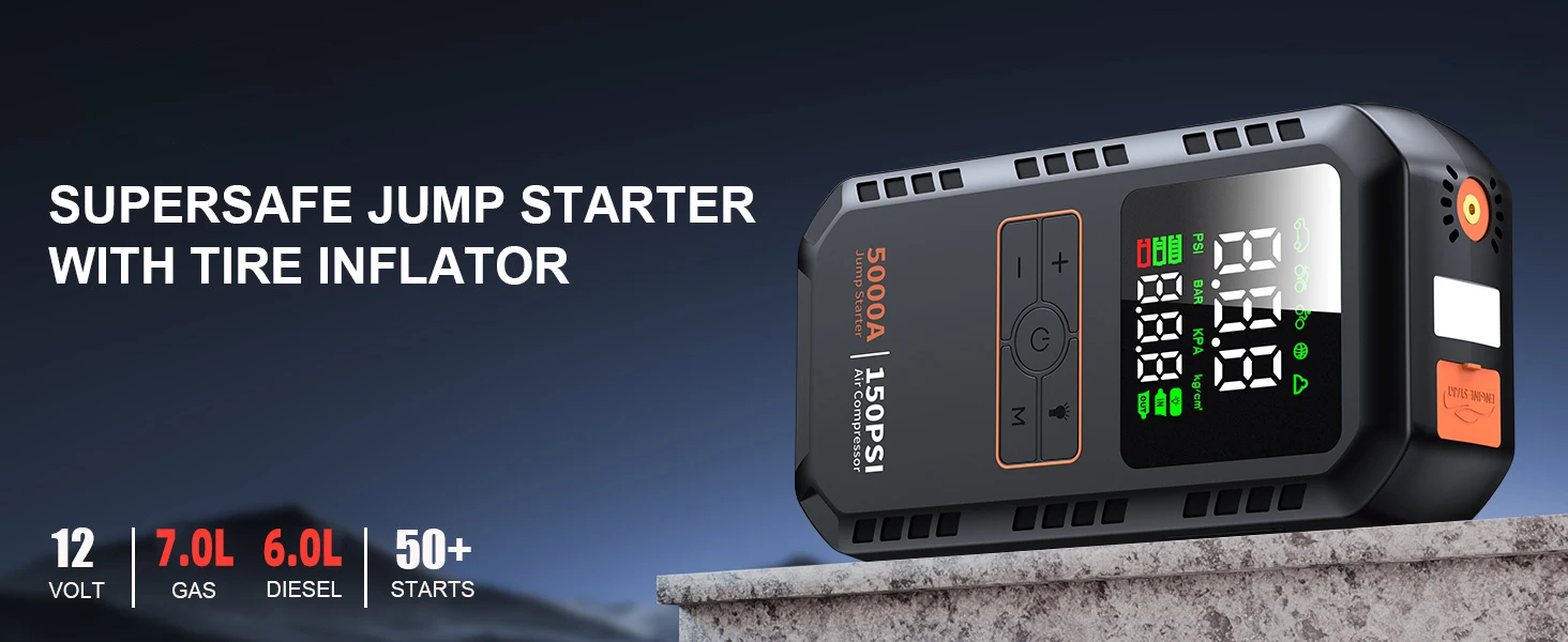 4-IN-1 Car Jump Starter with Air Compressor Peak 5000A Auto Battery Booster 150PSI Air Pump Portable Power Bank Tire Inflator
