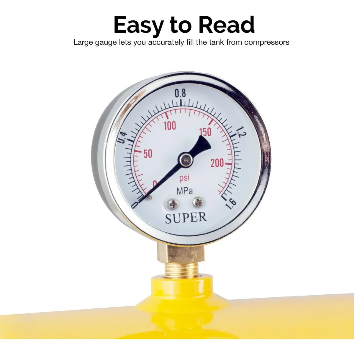 EASY TO READ GAUGE: air tank accurately fill the tank from standard shop compressor at recommended operating pressure of 87-116 PSI with the included easy-to-read gauge.