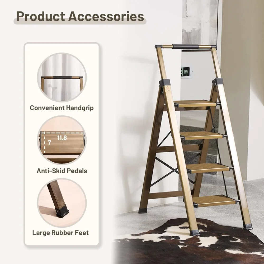 5 step ladder, aluminum 5 step stool with retractable handrail and anti-slip wide pedal, folding stool ladders 5 steps, 330lbs