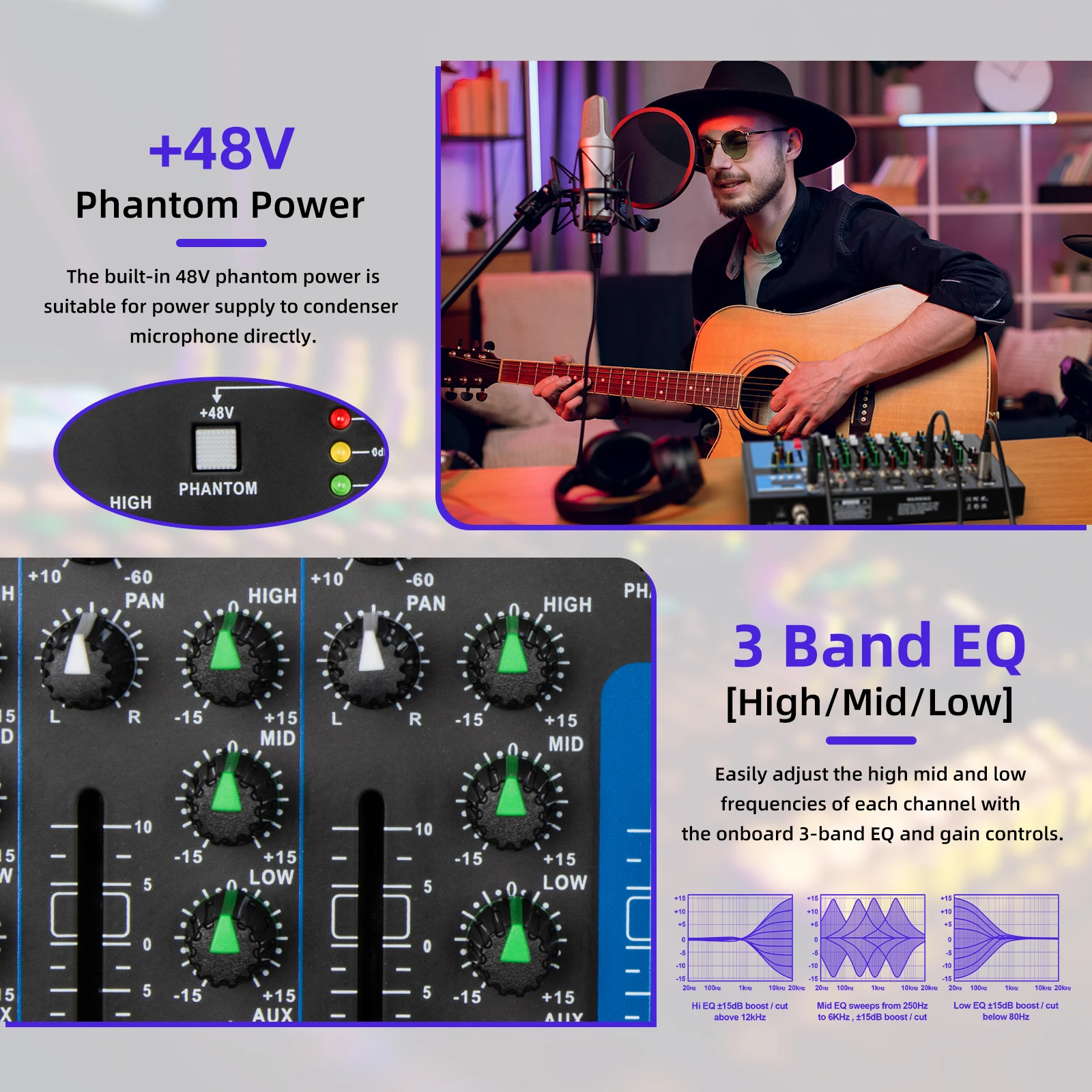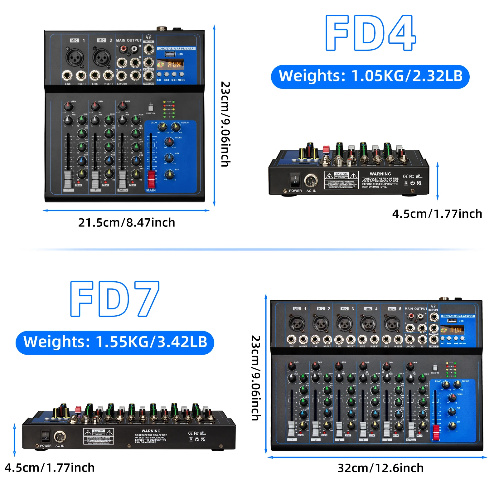 7-Channel Professional Mixer DEPUSHENG Portable USB Interface Playback DJ Mixer Performance Console