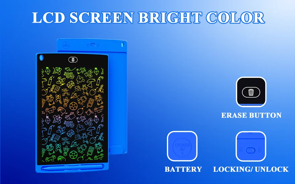 3.One-touch clear screen lock: The drawing board is designed with a one-touch clear screen function. Just one press to clear all patterns on the writing board in 1 second.