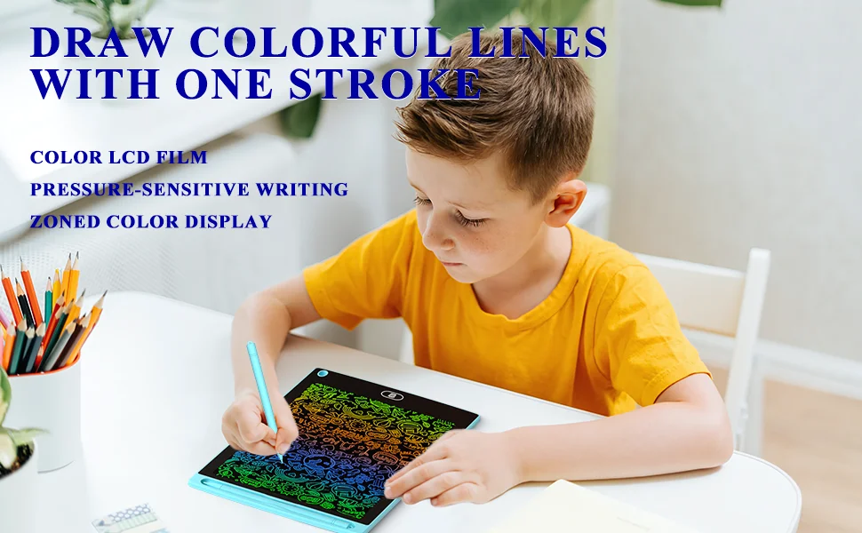 🎨【Ultra-Clear Color Display】Pressure-sensitive LCD screen creates vivid lines without ink/paper, safer than traditional art tools for children's creative doodling.