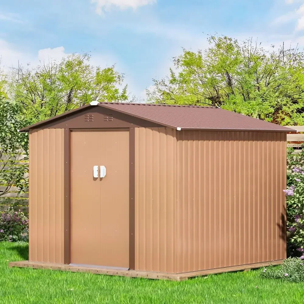 8'x8' Storage Shed Outdoor Metal Tool Shed Garden Backyard Sliding Door Lockable