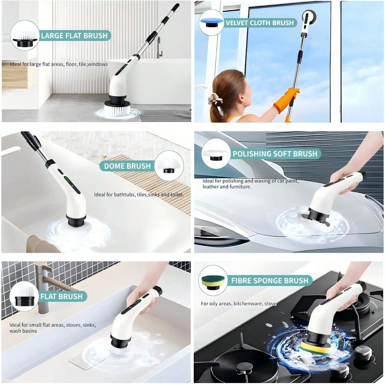 9-in-1 Electric Cleaning Brush Electric Spin Cleaning Scrubber Electric Cleaning Tools Parlour Kitchen Bathroom Cleaning Gadgets