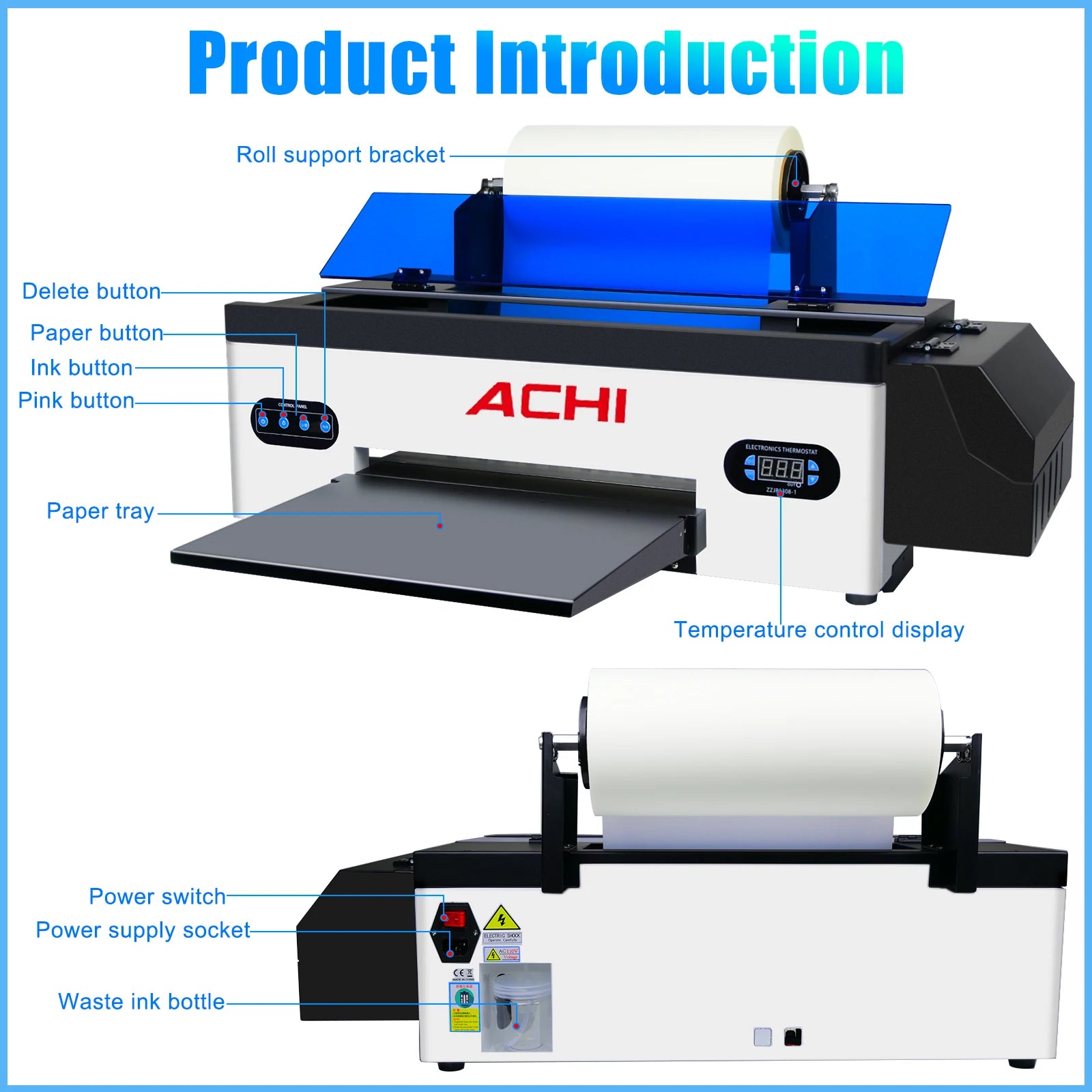 ACHI DTF Transfer Printer A3 DTF Printer T Shirt Printing Machine With Curing Oven for Clothes Hoodies Jeans Textile EU US Stock