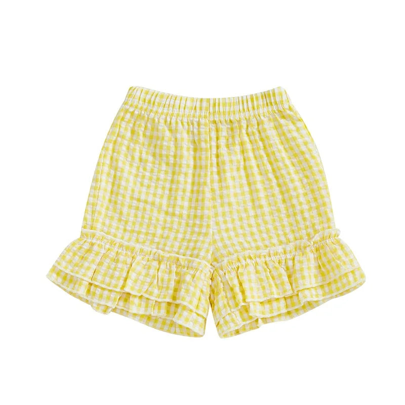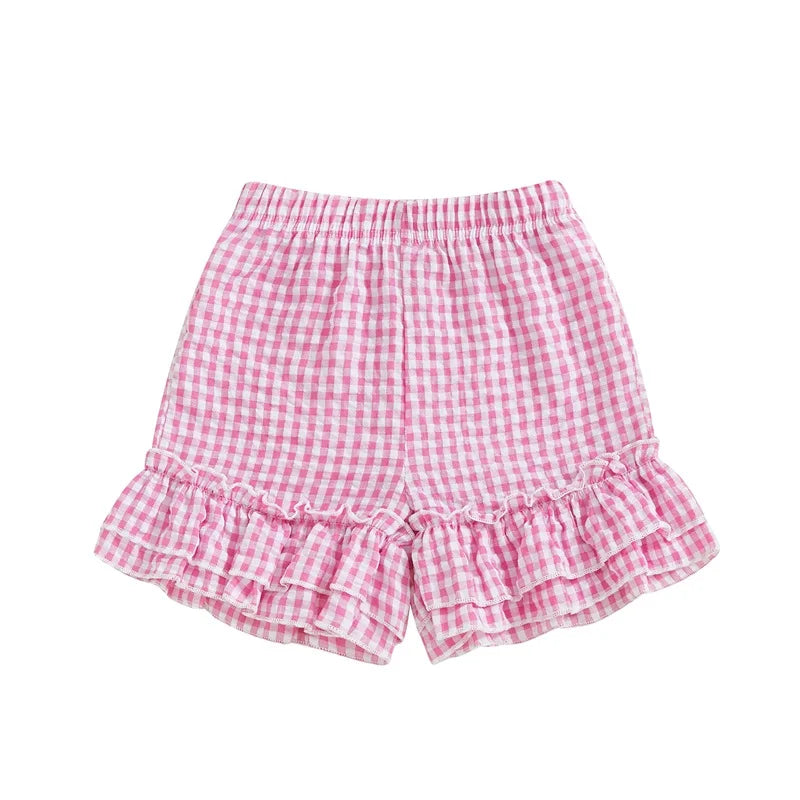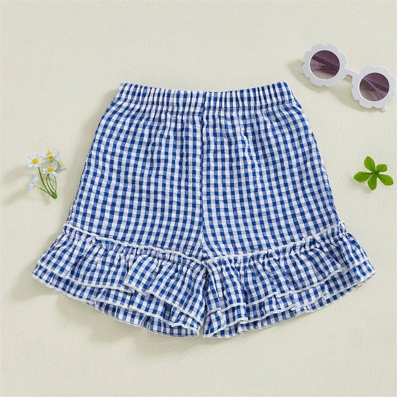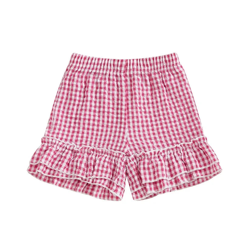 Dress your little one in effortless charm with these baby girl plaid shorts, featuring an elastic mid waist and a playful ruffled hem.