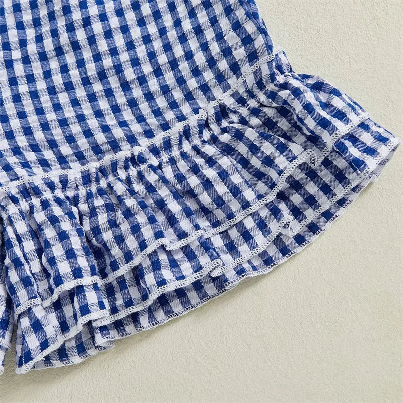 - Classic plaid print with a ruffled hem adds timeless style that’s easy to mix and match with tops and rompers for everyday wear.