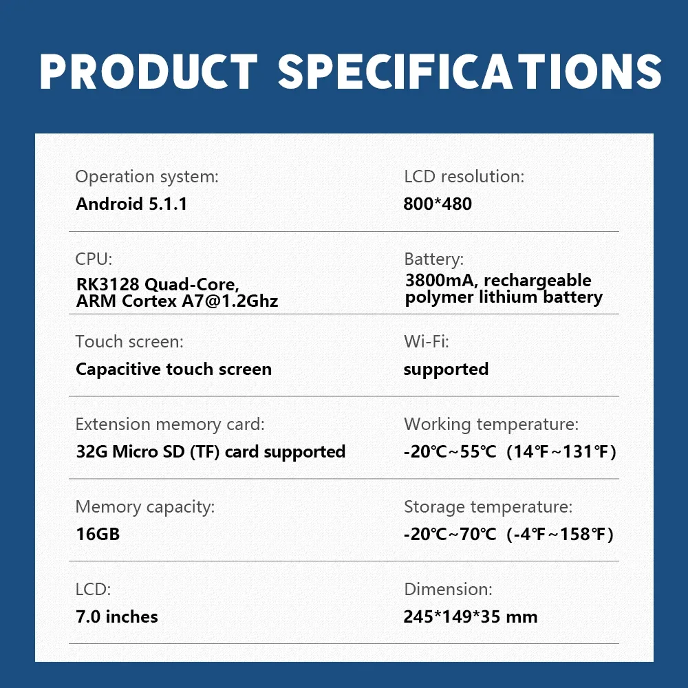 ● CPU: RK3128 Quad-Core,ARM Cortex A7@1.2Ghz