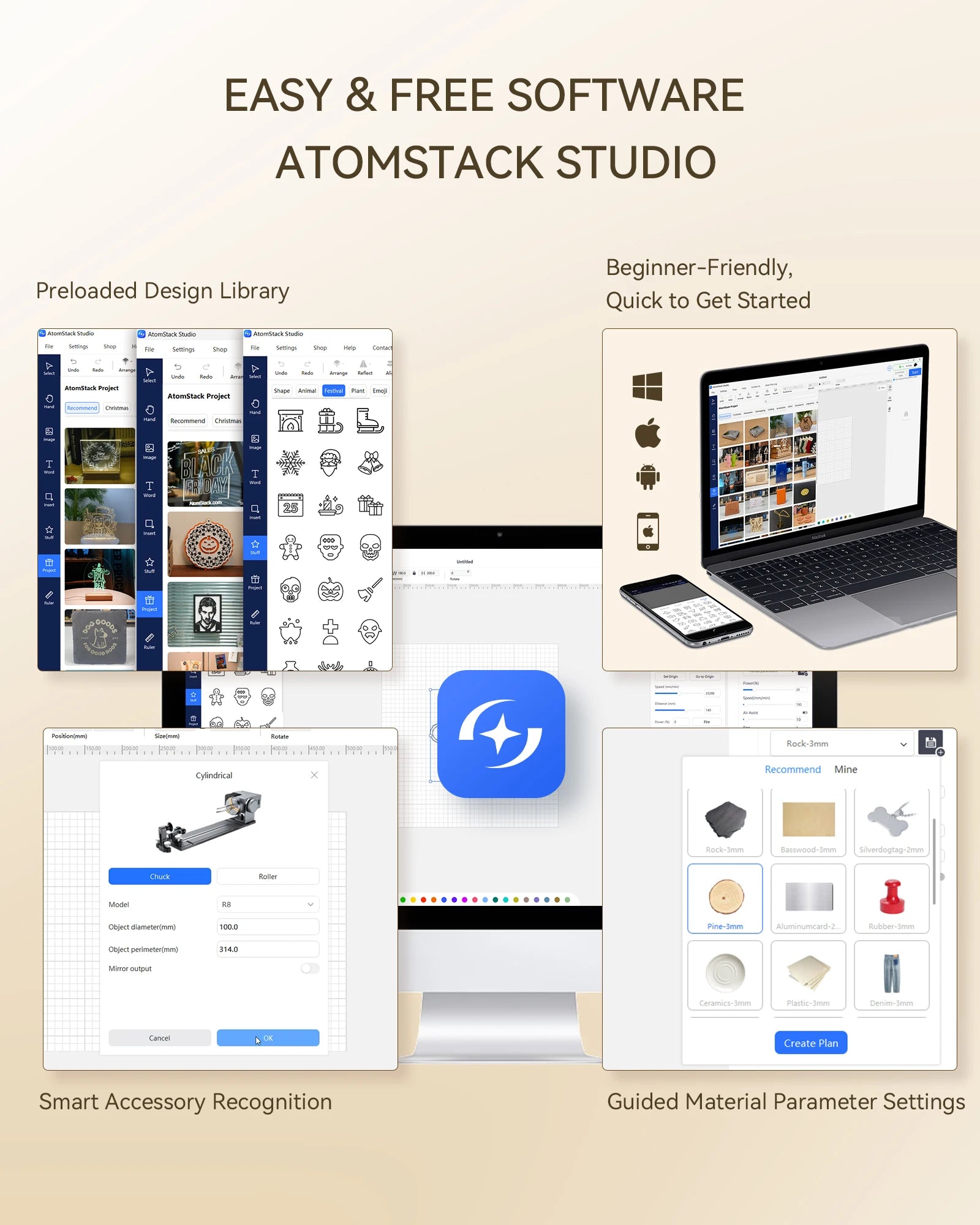- Bluetooth connectivity enables wireless design and engraving, so you can work from your workspace or on the go without cables.