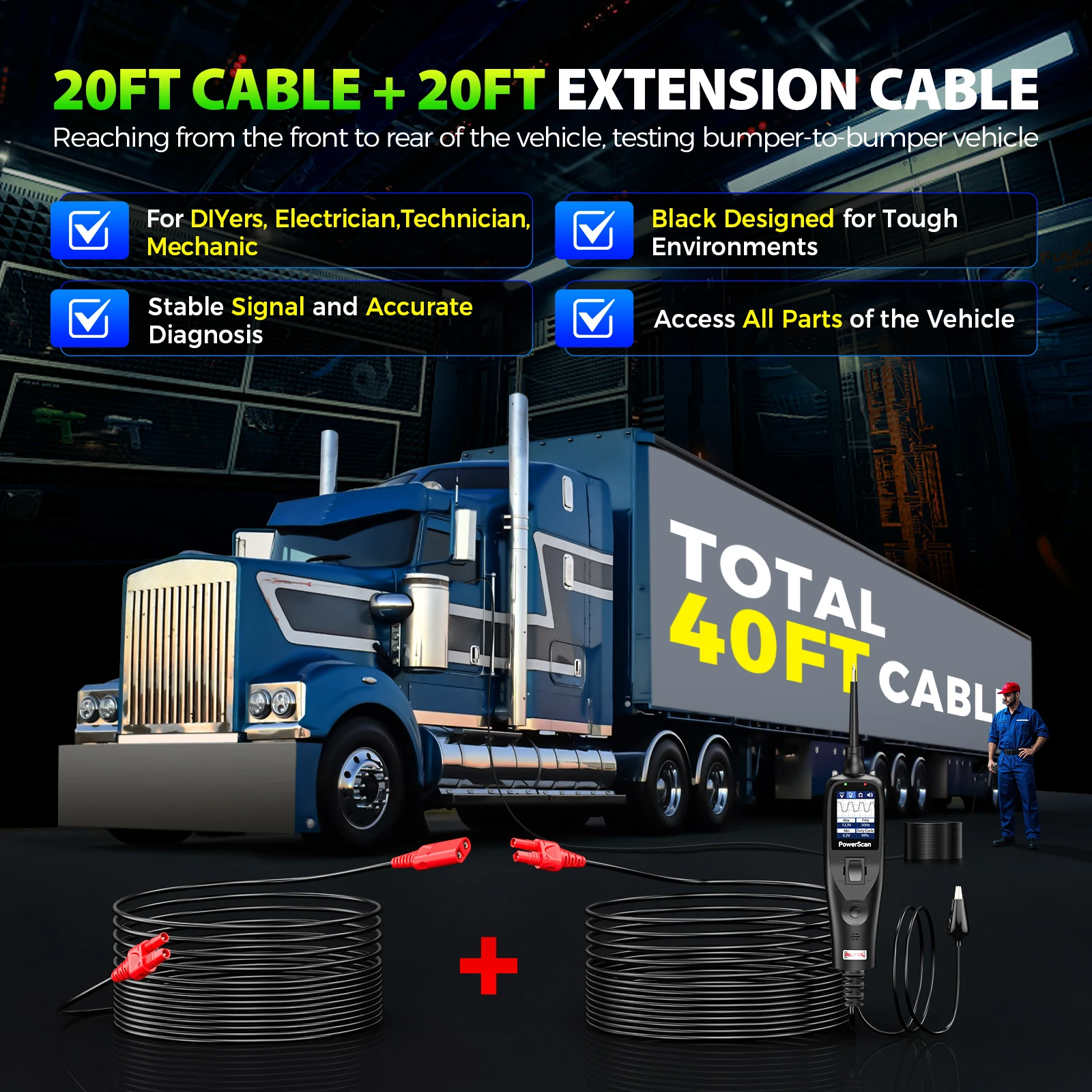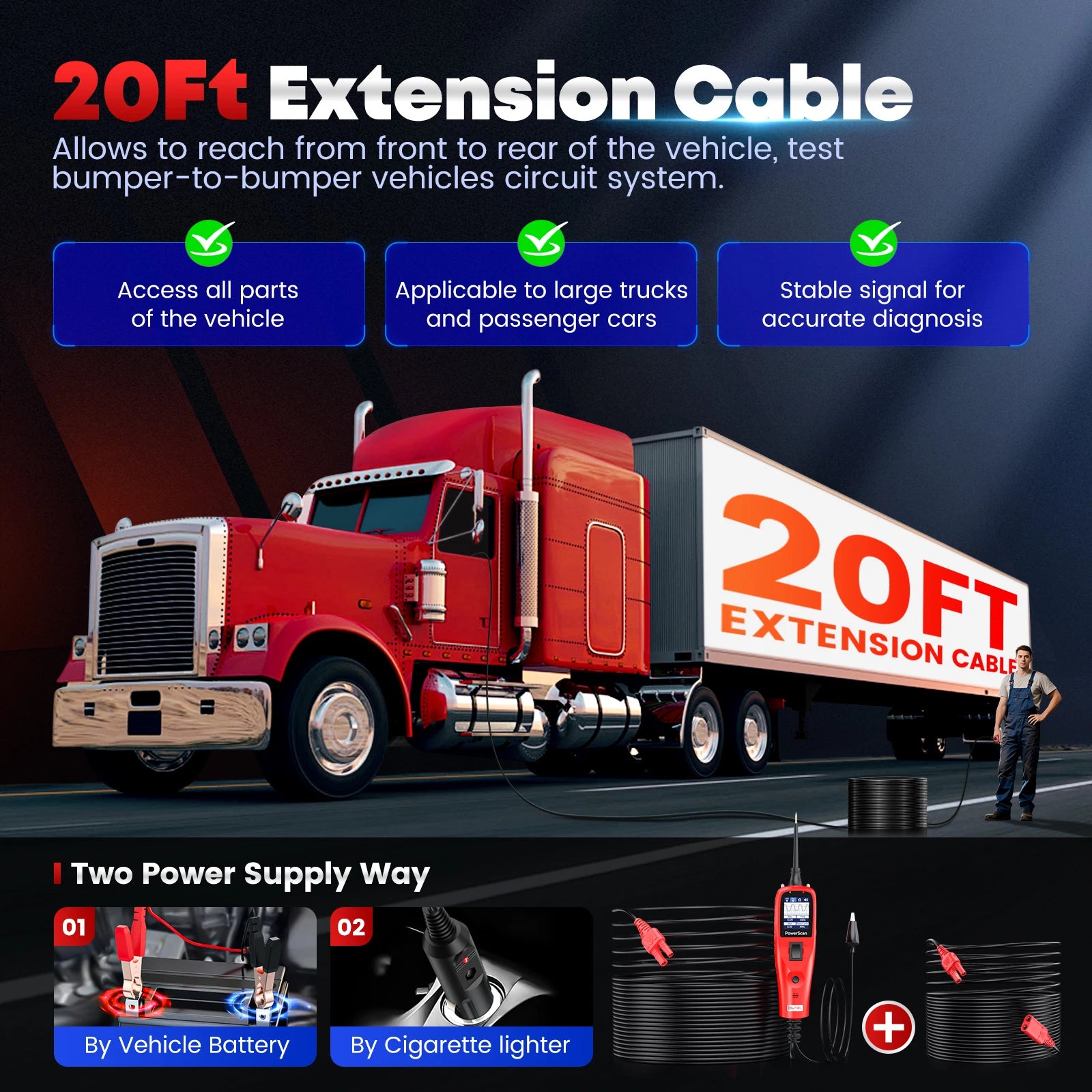 11. 20ft (extendable) cable provides excellent accessibility to test along the vehicle
