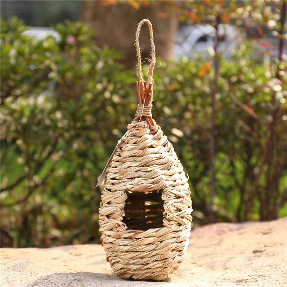 Bird Cage Comfortable Resting Place Natural Grass Bird House Weaved Hanging Parrot Nest Houses Outdoor Decoration