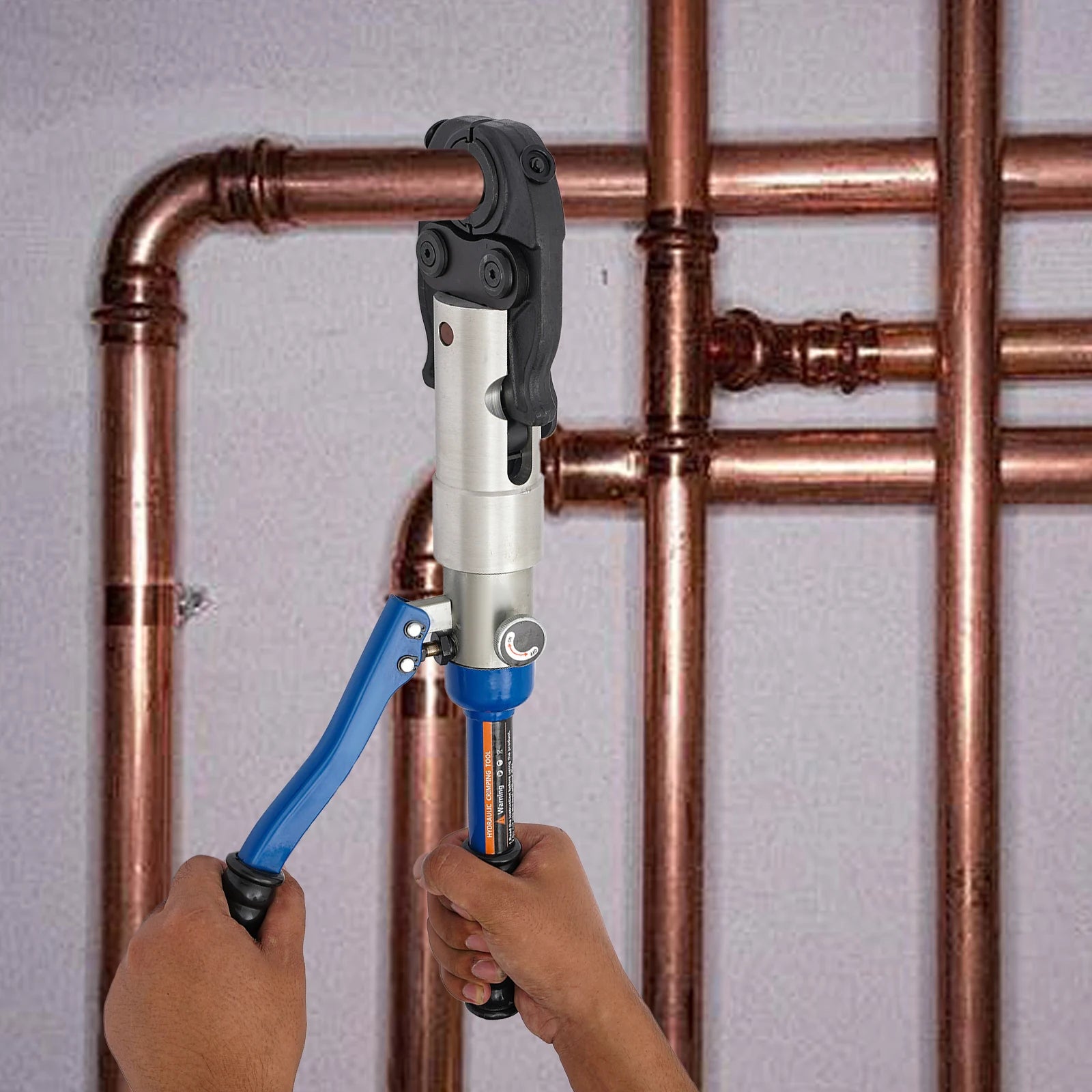 Practical and Efficient: The hydraulic design provides an even crimping force to ensure a tight and airtight joint to prevent leaks. The compact design is ideal for narrow spaces, making it an invaluable tool and labor-saving solution for copper pipe connections.