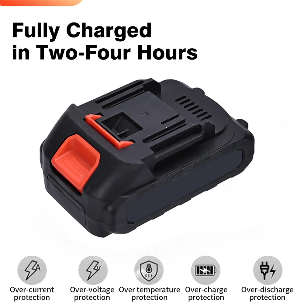 Provides your tool with longer run-time, more torque, and more power. 16.4 ft/sec ultra-high chain speed takes only about 8 seconds to cut a 6"" diameter log. The cordless mini chainsaw weight 2.9lb, small in size, comfortable to hold, and convenient access to all places. Very suitable for women and the elderly, and will not feel tired after a long time of use. -