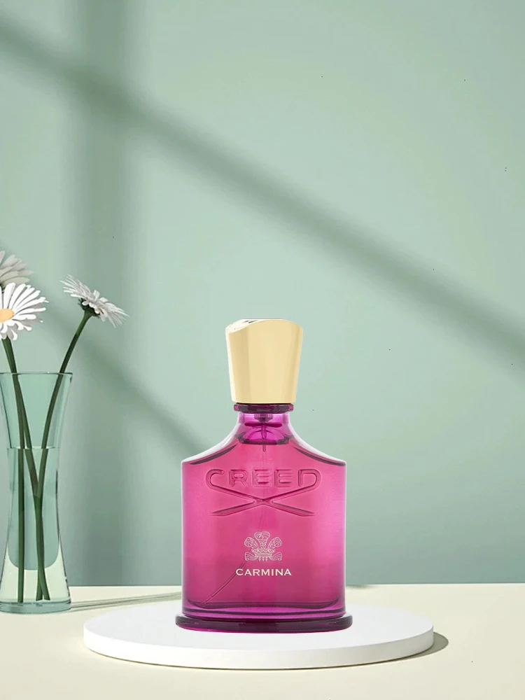 The rosy, woody and warm fragrance of Carmina is a captivating fragrance for women from the house of Creed. Launched in 2023, this scent features notes from saffron, pink pepper and black cherry. At the center are notes from violet, cashmere wood, peony and may rose, while the base is filled with hints from myrhh, frankincense, ambroxan and musk.