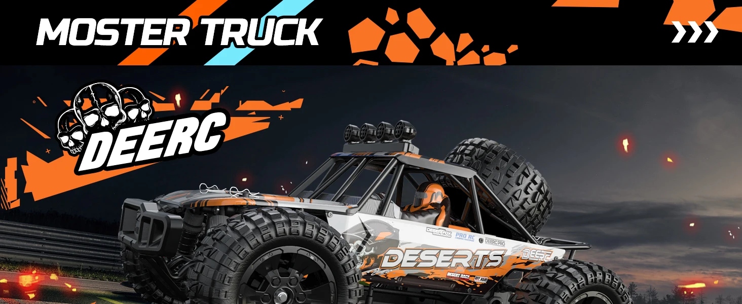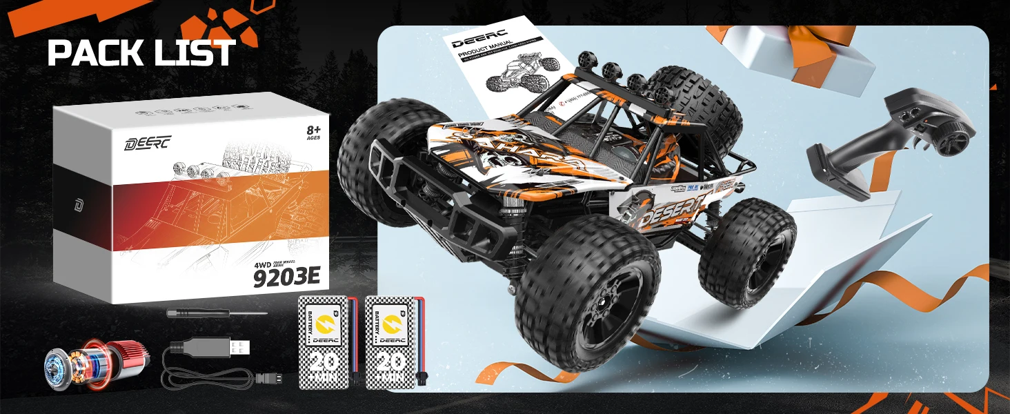 DEERC 9203E 1:10 Scale RC Truck: 48KM/H, 4X4, Lights, 2 Batteries, 2.4GHz, All-Terrain, 30 Min Play