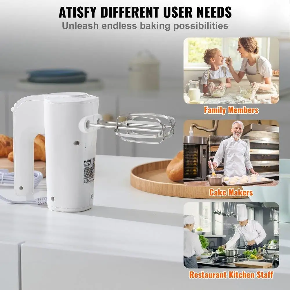 Powerful 200W Motor: Our electric hand mixer is equipped with a powerful 200-watt motor that provides reliable and consistent performance for all your mixing needs. Its maximum noise level of ≤85 dB ensures stable output for continuous work, while the bass and low noise levels are less likely to disturb others.