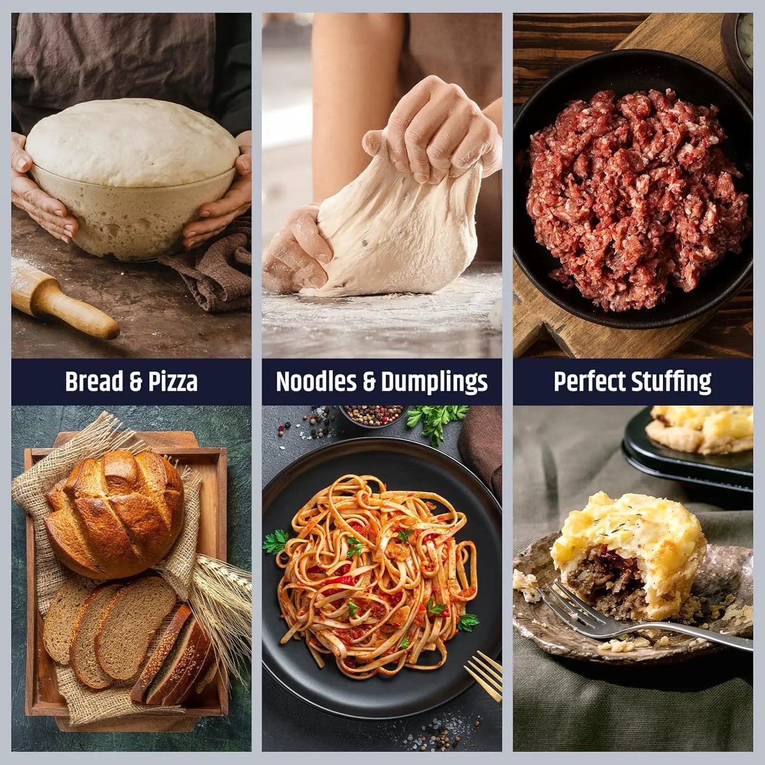 6.5QT/7L LARGE CAPACITY: With a generous 7L capacity, this dough maker can handle 1 to 7 liters of dough at once, making it perfect for both small and large families. The kneading function mimics hand-kneading, meeting all your baking needs for bread, cookies, pizzas, buns, or dumplings in one go.