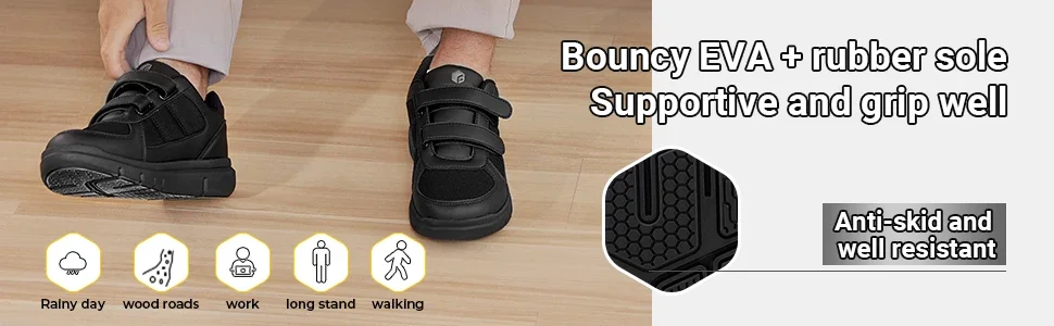 5.Breathable well - these men's shoes for swollen feet don’t tired or sweaty, mesh upper breath well and heat dissipated, slip-resistant rubber outsole offers reliable traction.