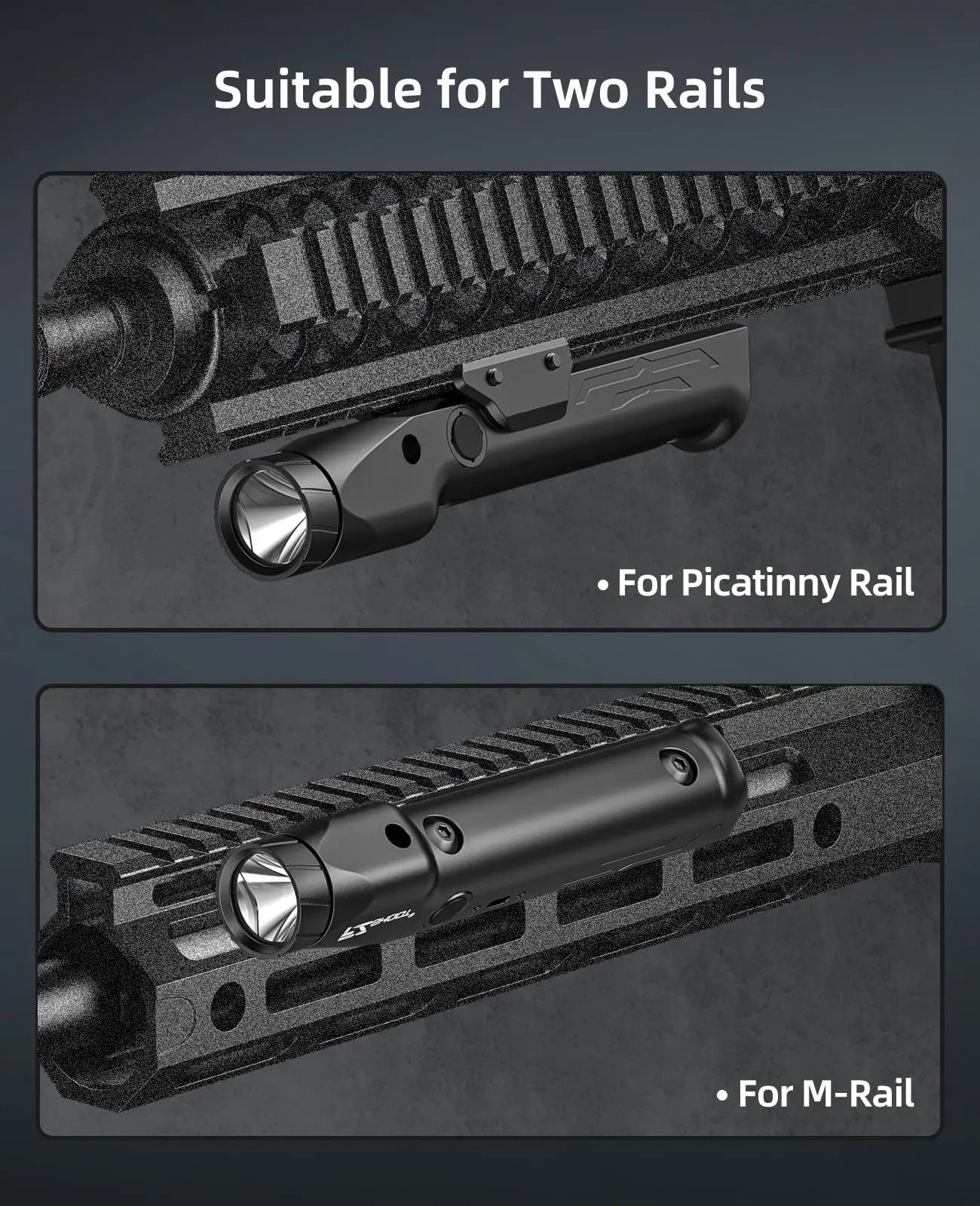 Super Compatibility and Stability: The tactical flashlight has upgraded track which fixed with 2 metal screws, which can ensure the stability of the flashlight light under severe vibration.