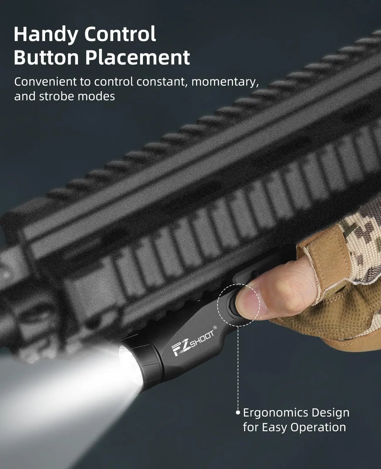 High quality material: EZshoot tactical flashlight is made of aviation-grade aluminum and is sturdy and compact, it won't take up too much space and there's no need to tidy up wires.