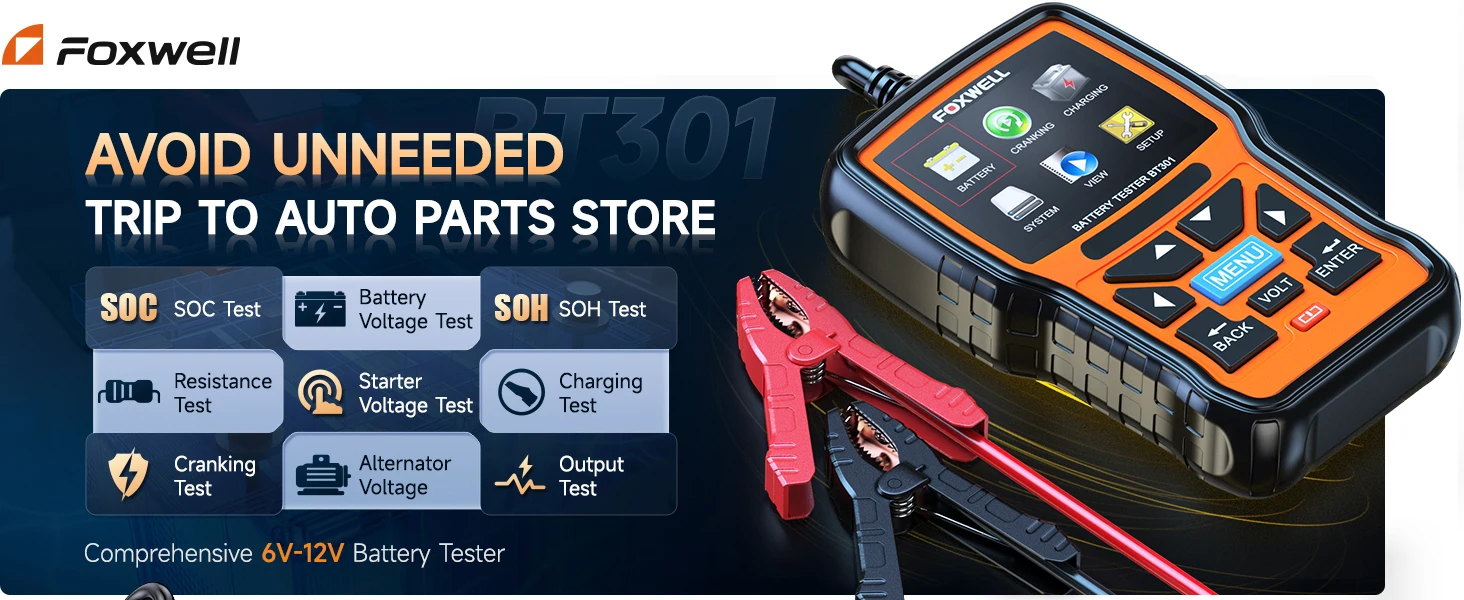 FOXWELL BT301 6V 12V Car Battery Tester Automotive Battery Load Tester Digital Battery Analyzer Crank Charging System Alternator