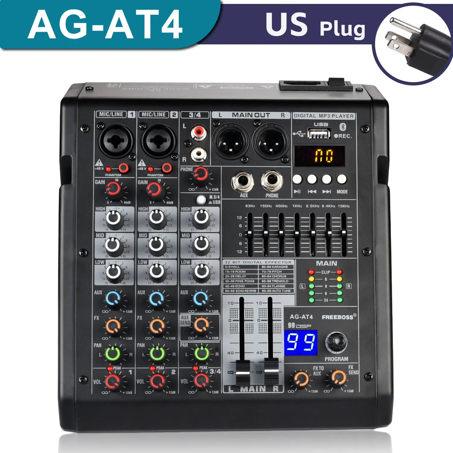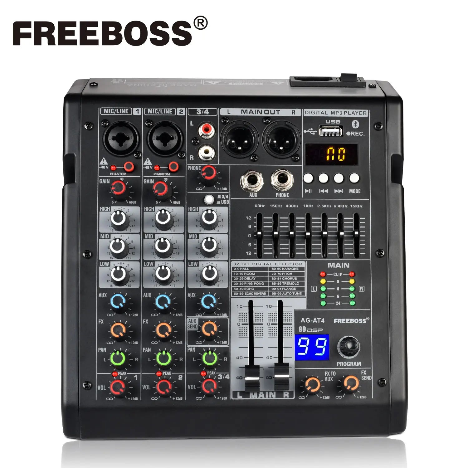 Freeboss Audio Mixer 4 Channels 99 Effect USB Mixing Console PC Record Bluetooth Studio 48V Sound Table Karaoke Mix Desk AG-AT4