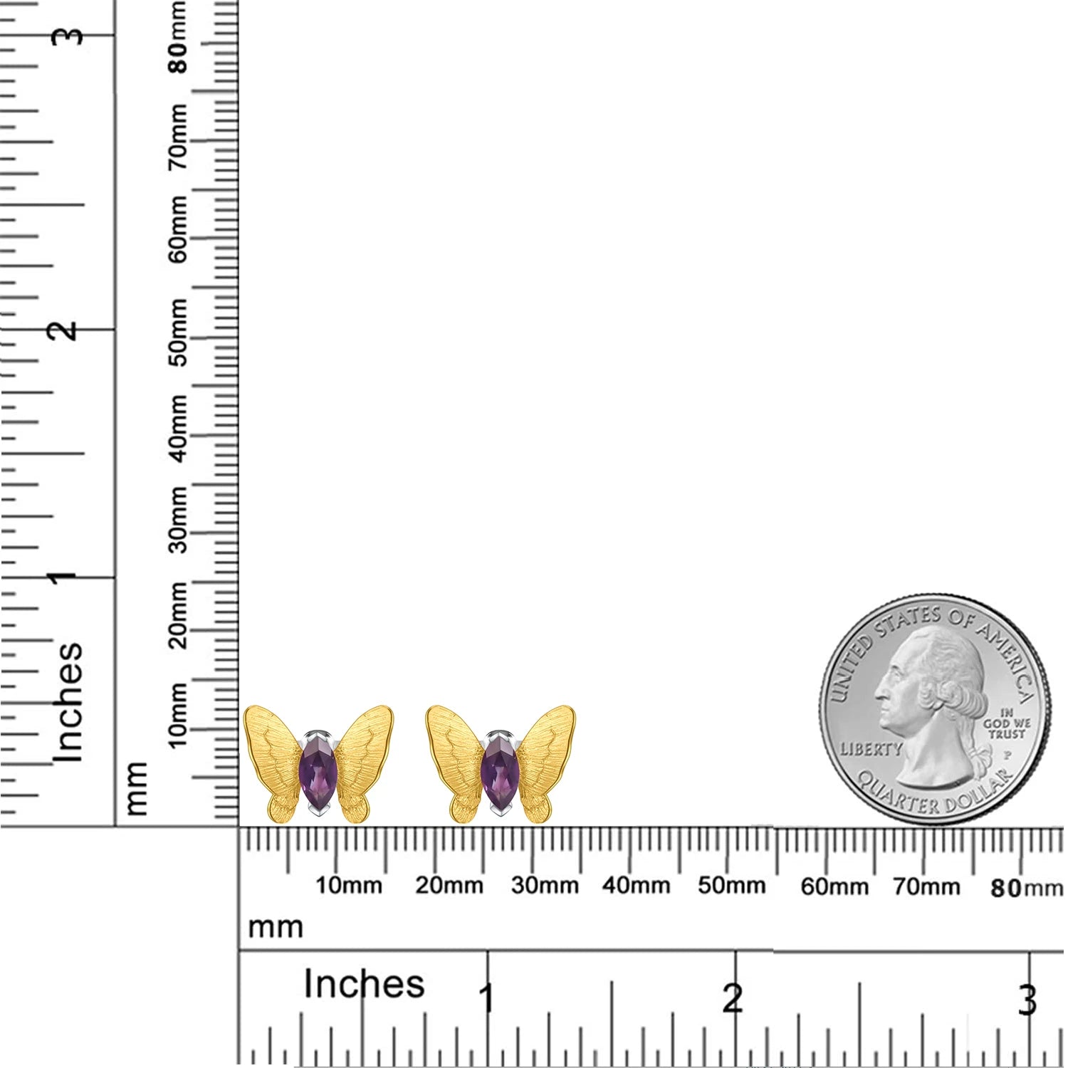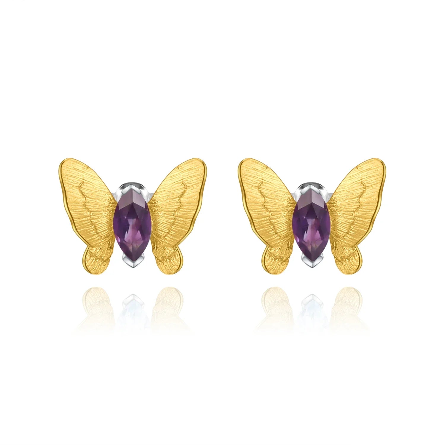 Gems Ballet 925 Silver Butterfly Amethyst Stud Earrings