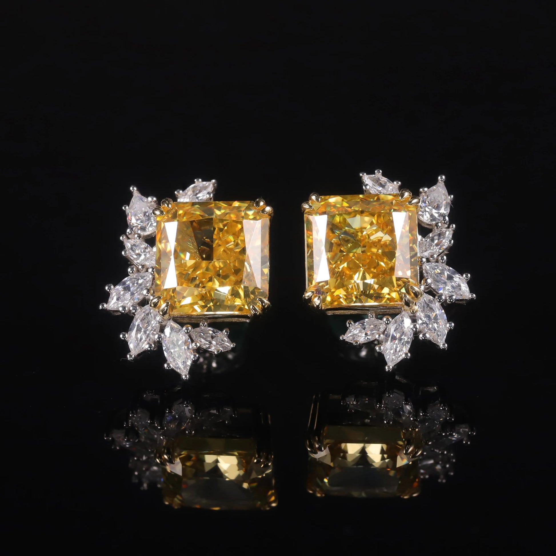 - Sparkling centerpiece: A 10x10 mm square main stone features Diamond-fire CZ in Fancy Vivid Yellow with Zircon accents for radiant color, clarity, and lasting shine.