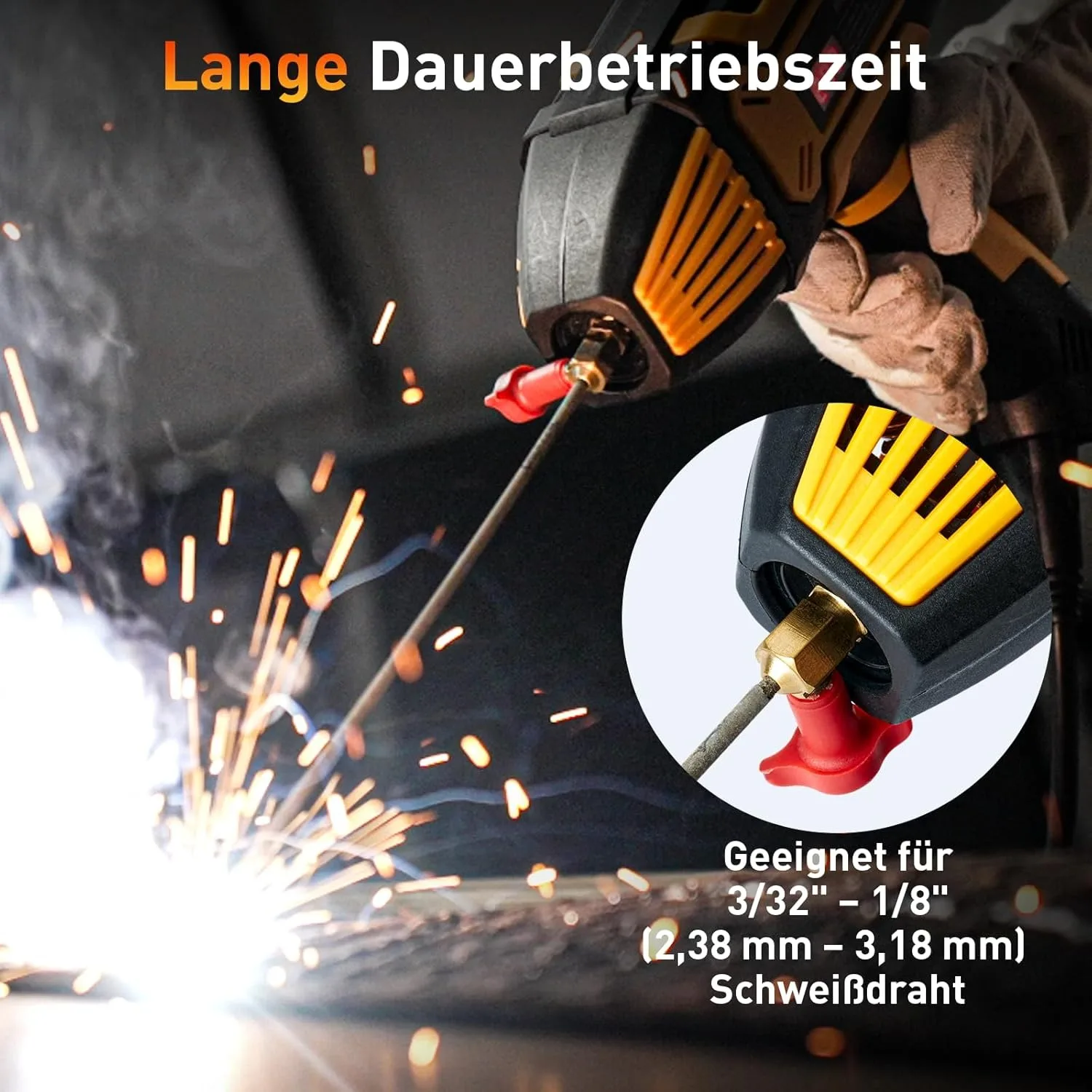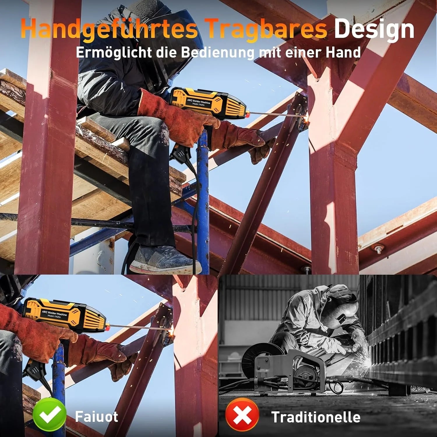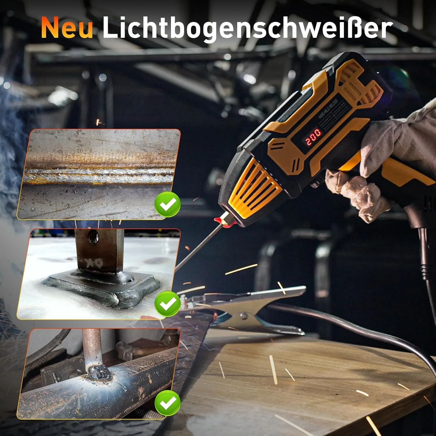 IGBT lace technology: No more failed welds. This arc welder ensures clean and burr-free welds with every use. Whether fence repair, DIY project or professional work, this portable machine provides you with precise results in professional quality. Time saving, less wastage and nickel welds with every stroke