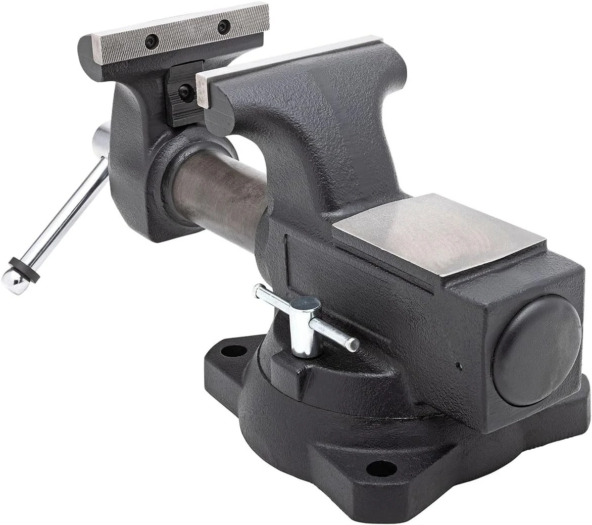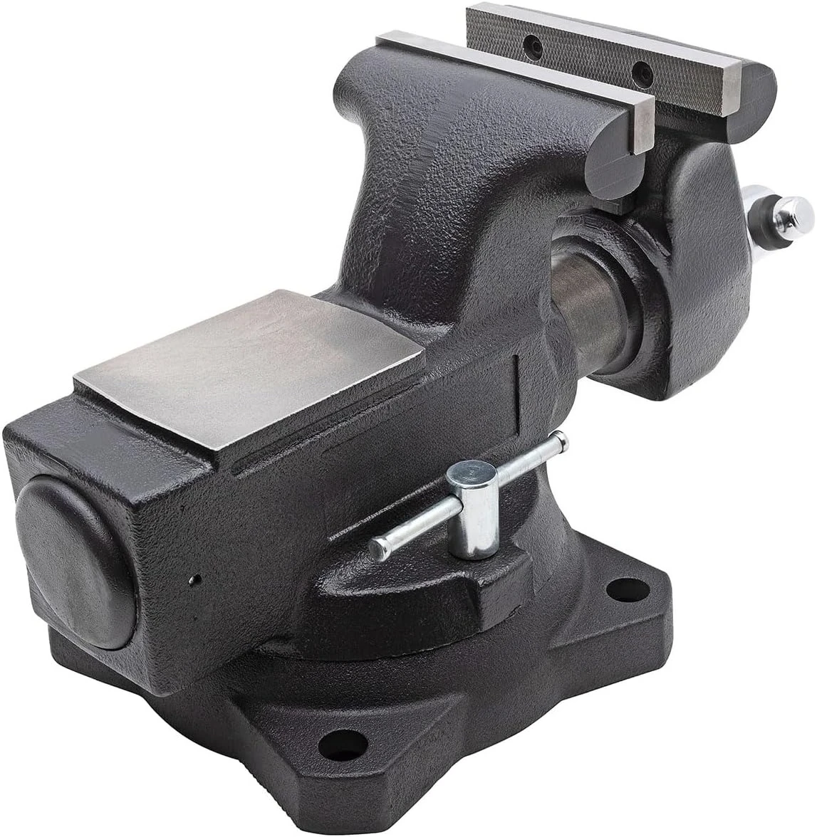 - TECHNICAL SPECIFICATIONS: This heavy-duty workbench workshop vise is designed for performance and long-lasting durability that lasts for years of heavy usage, Equipped with a secured interlocking swivel base and impressive 5.52" Jaw Width, 5.30" Maximum Jaw Opening, and a Throat depth of 3.82" offering versatility and convenience for various projects. Its maximum jaw clamping force of 8992 lbs. ensures secure and precise clamping allowing you to tackle diverse projects with confidence and ease.