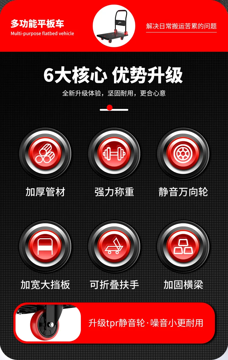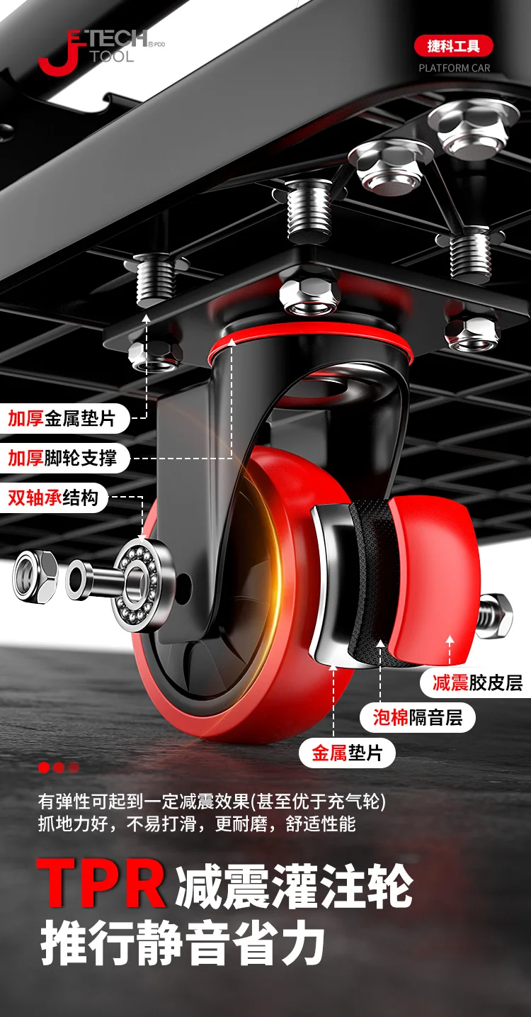 Heavy-Duty Flatbed Tool Cart - 1000lb Capacity, Locking Wheels & Steel Frame for Workshop/Garage
