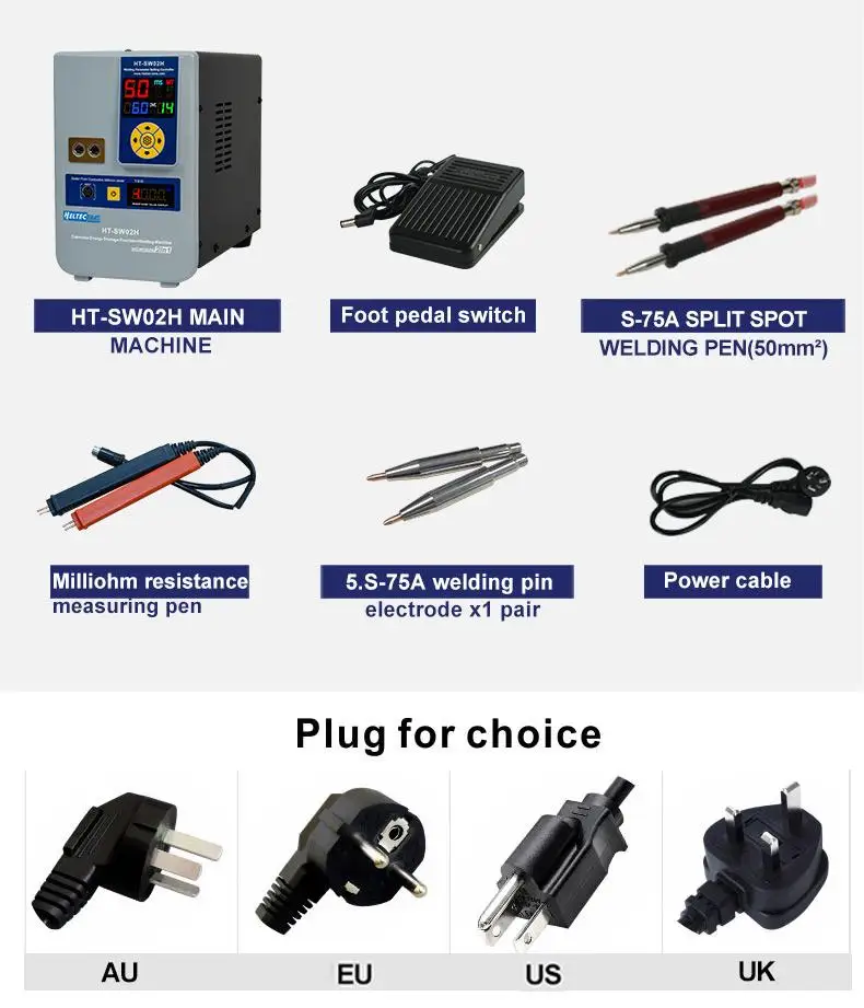 Please note that the spot welding pen included in the accessory pack of HT-SW02H from the US and Brazil warehouses is still the old version, as shown in the picture. The Poland warehouse has already been updated with the new version. Kindly pay attention to the warehouse selection when placing your order.