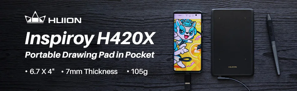 Huion H420X Graphics Pen Tablet 4.17*2.6 Inch Drawing Tablets for Android Phone PC Mac