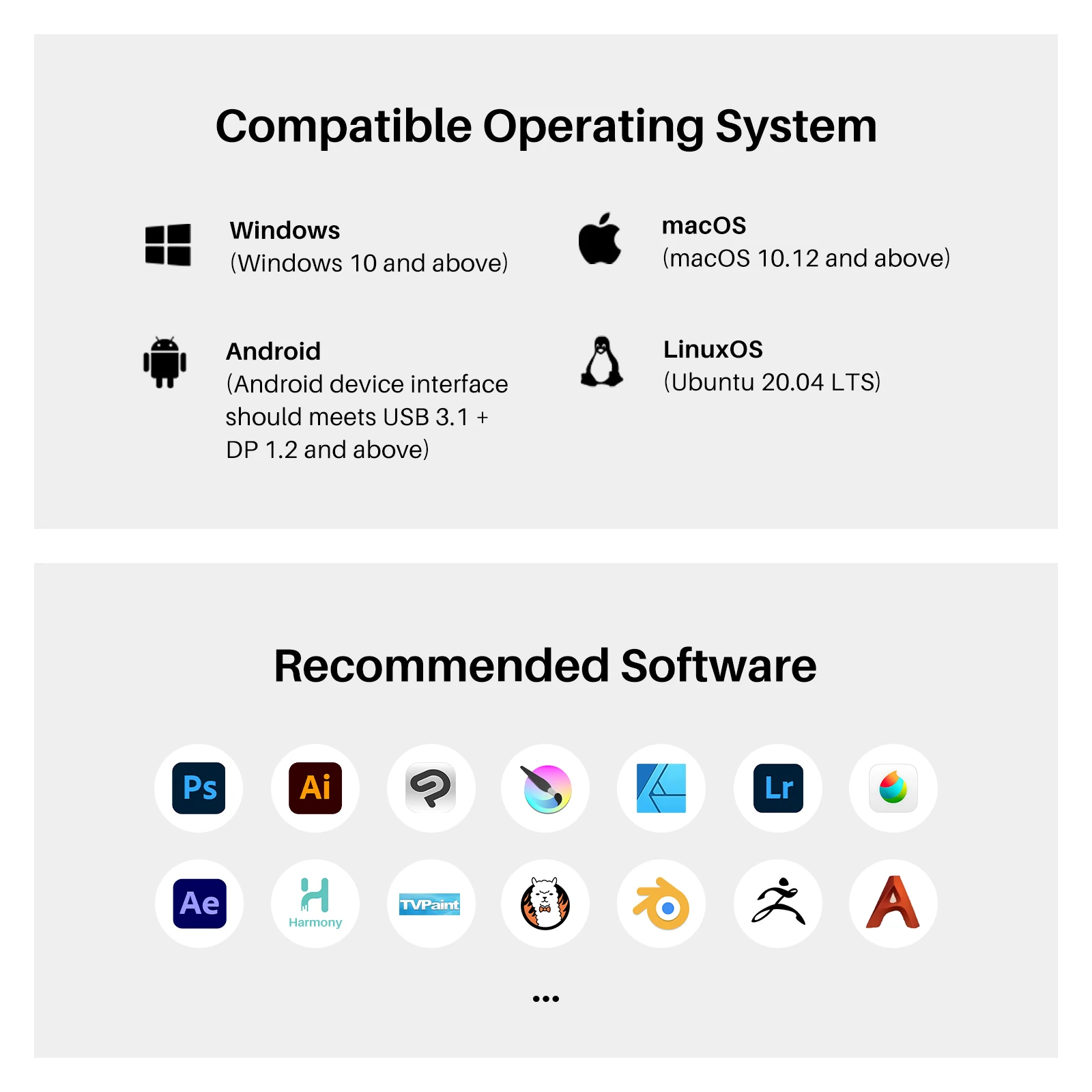 OS Support: Windows 7 or later, macOS 10.12 or later, Android(USB3.1 DP1.2 or later), Linux(Ubuntu 20.04 LTS)
