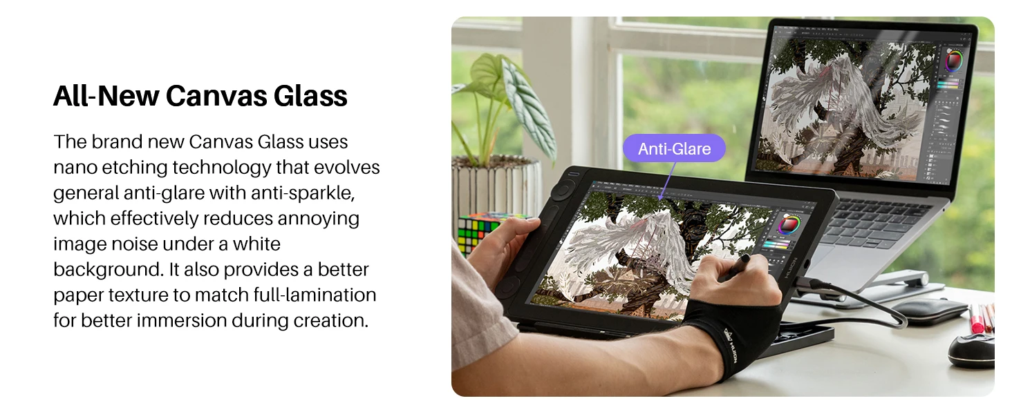 Huion Kamvas 13 Gen 3 Drawing Display 13.3" Art Tablet+Anti-sparkle Canvas Glass, 99% sRGB, PenTech 4.0 16384 Pen Pressure