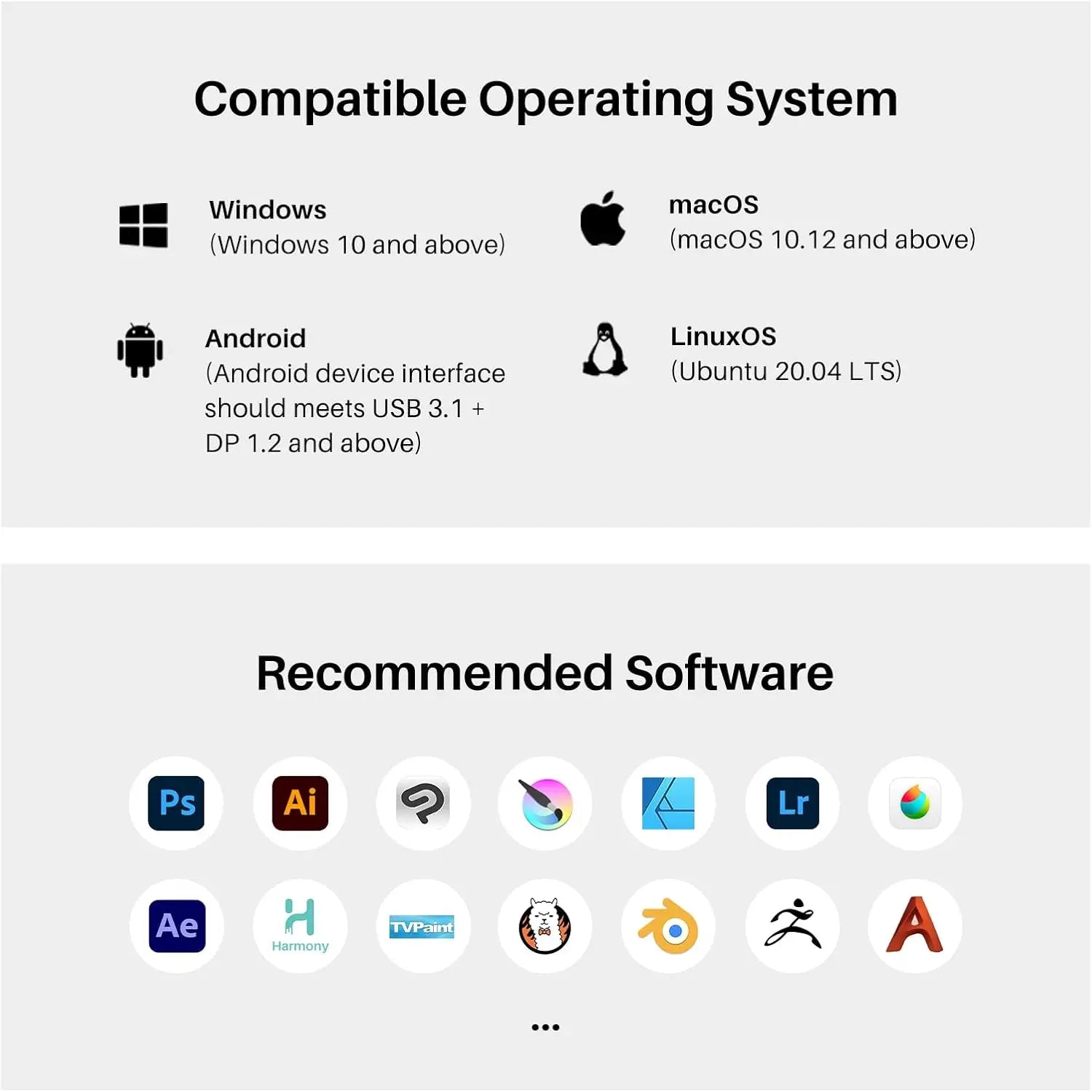 Kamvas 16 (Gen 3) retains the convenient dual-interface design. We have optimized the connection stability to prevent disconnections. Also, you can use your own full-featured USB-C to USB-C cable to connect the display to your PC, laptop, or Android phone.